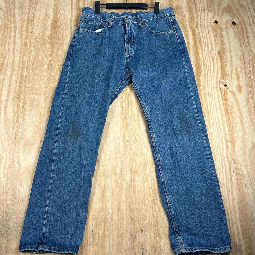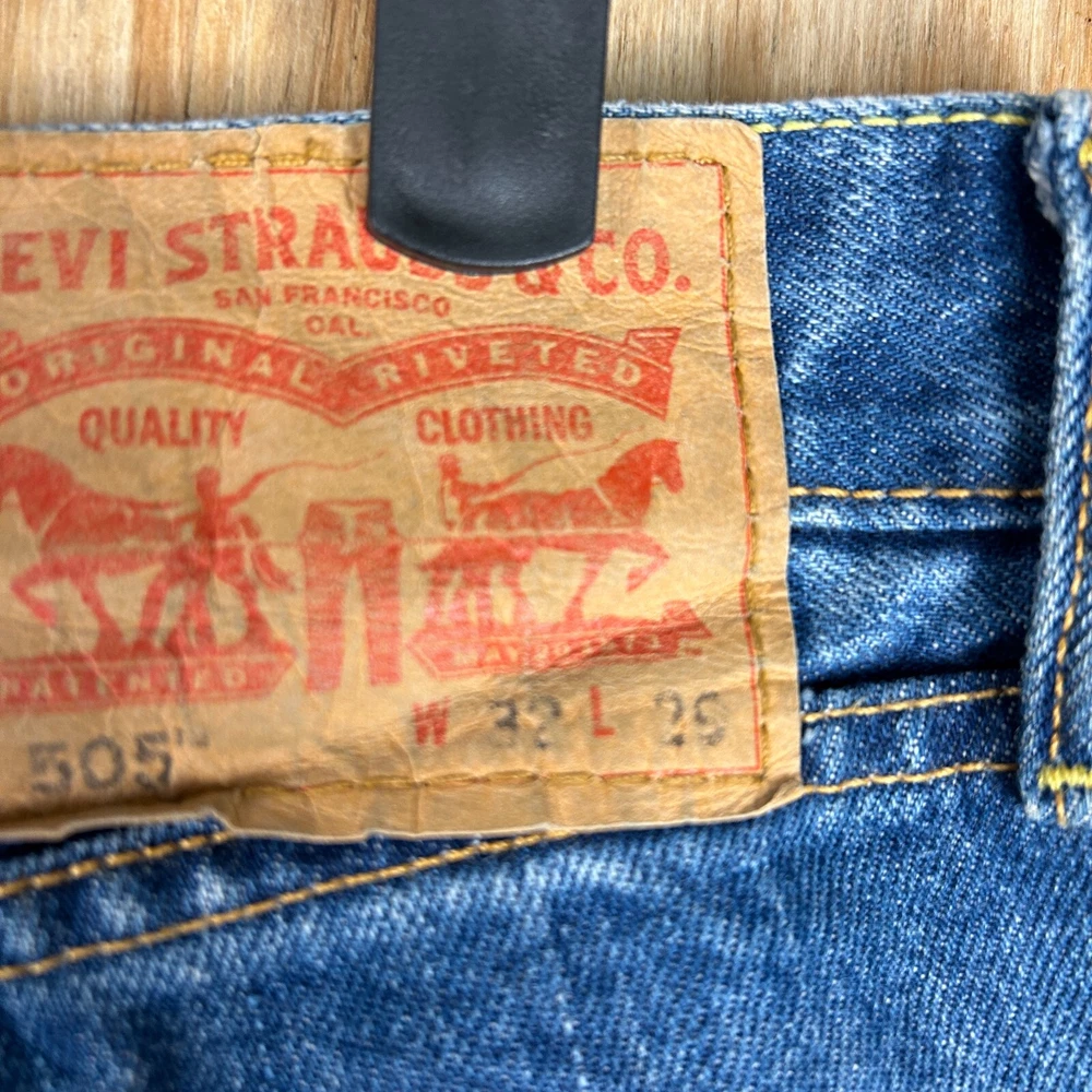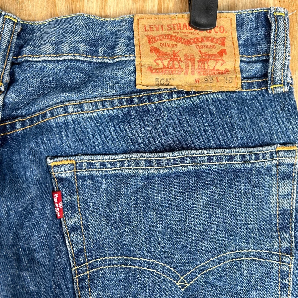 Step into timeless style with the Vintage Levi's 505 Classic Straight Leg Denim Jeans. Designed for the discerning gentleman, these jeans feature a versatile medium wash and a comfortable straight fit that's been beloved for generations. Crafted from durable cotton denim, they're built to last and become a go-to in your wardrobe. The Levi's 505s are adorned with signature accents such as the iconic Levi's logo, button, and zipper, adding a subtle touch of brand prestige to your everyday look. Equipped with practical pockets and crafted to provide ease of care and comfort, these jeans are perfect for a variety of occasions, from casual outings to smarter events. With a waist size of 32 inches and an inseam of 29 inches, they're a regular fit that ensures both style and comfort for all-day wear.