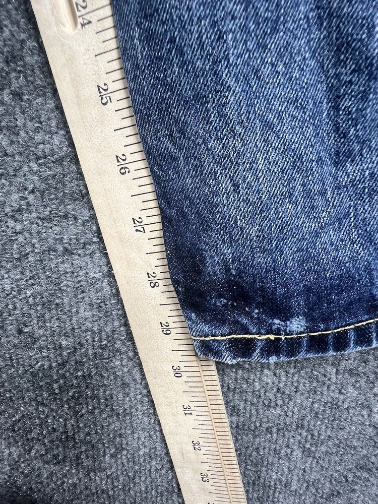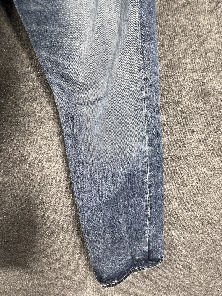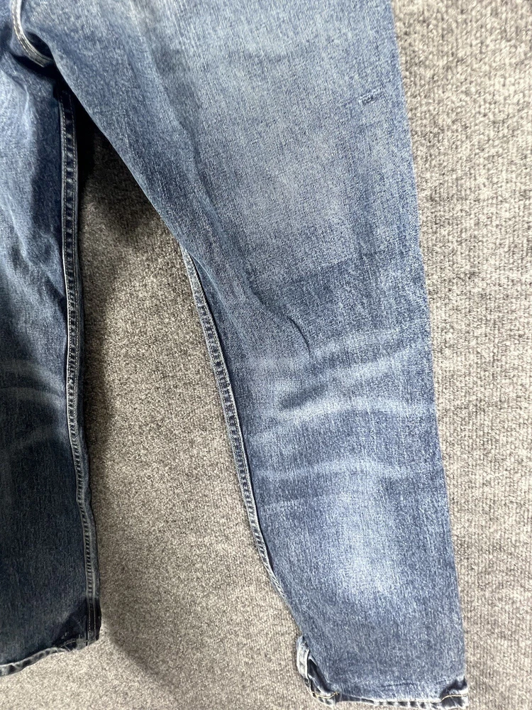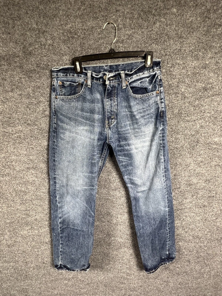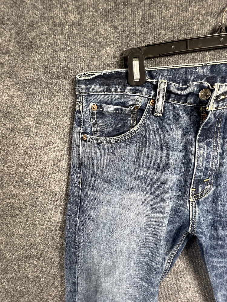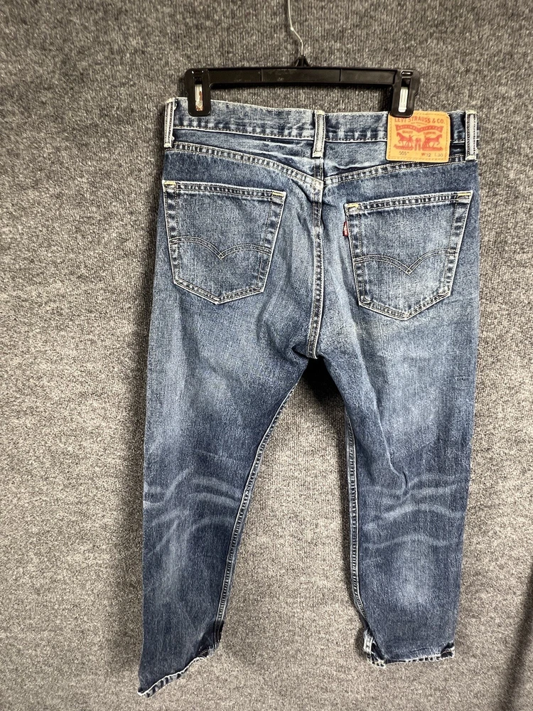 Elevate your style with these vintage Levi's 505 jeans in classic blue. With a regular fit and straight cut, these jeans are made from durable cotton denim and feature a 5-pocket design with a coin pocket. The button and zipper closure adds a touch of sophistication, while the iconic Levi's logo accents the garment. These jeans are machine washable for easy care and come in a size 32 x 30. Perfect for any season, these Levi's 505 jeans are a must-have for any fashion-forward individual.