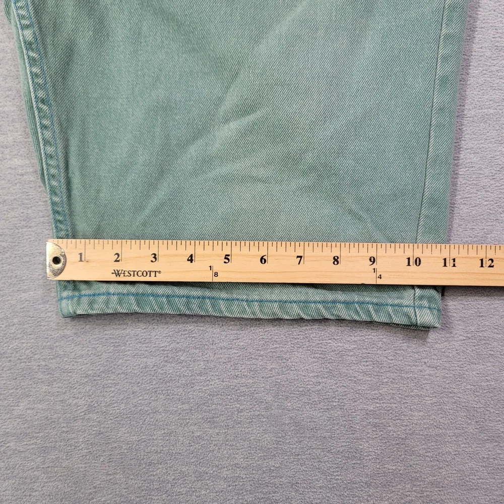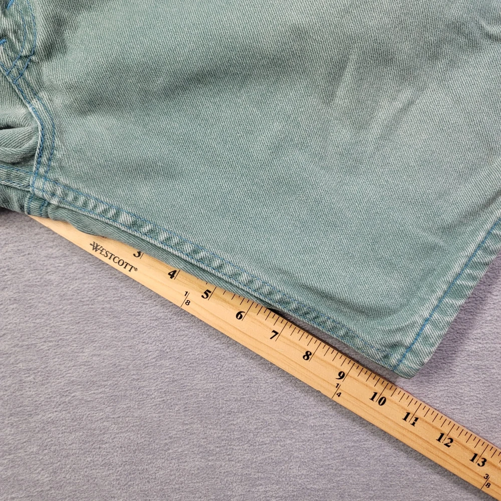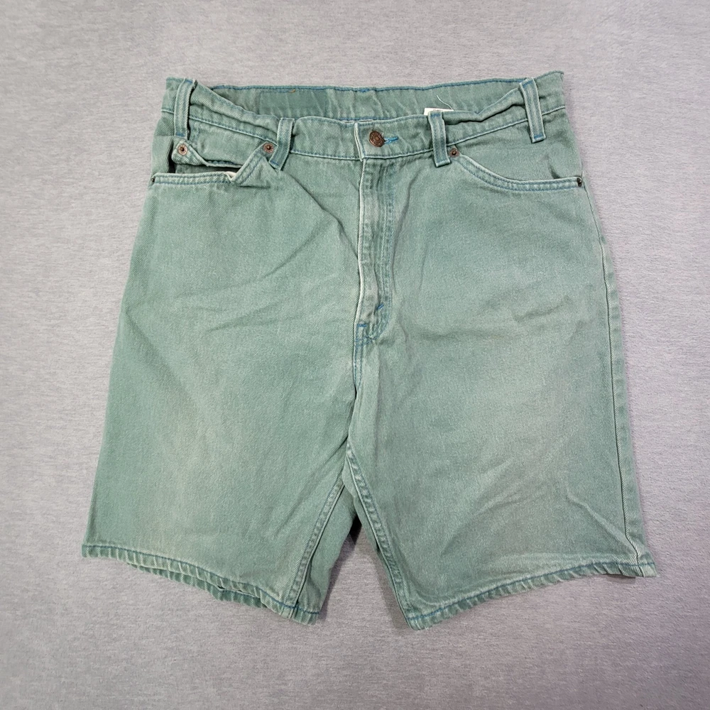 Crafted for comfort and style, these vintage Levi's 550 denim shorts are a classic addition to any wardrobe. With a mid-rise waist and a relaxed fit, they offer a timeless Bermuda style that's ideal for casual outings. The solid green hue is versatile, making these shorts a perfect pairing with a variety of tops and shoes. The durable cotton denim ensures these shorts can endure the rigors of daily wear while maintaining their shape. Equipped with a zip closure and the iconic 5-pocket design, they also feature the sought-after orange tab, confirming their authenticity as a product made in the USA. Size 34 with a 10-inch inseam, they're a staple piece that embodies the essence of American casual fashion.