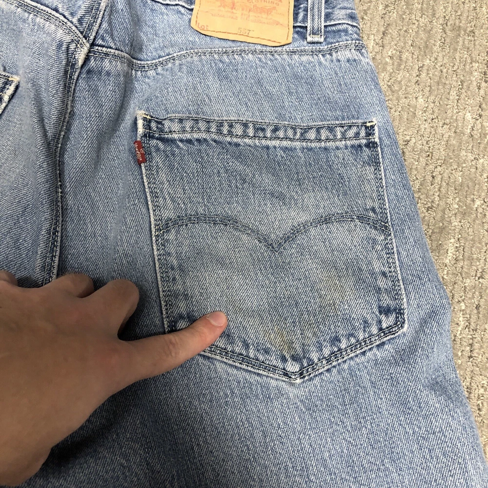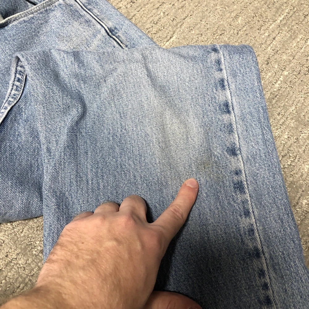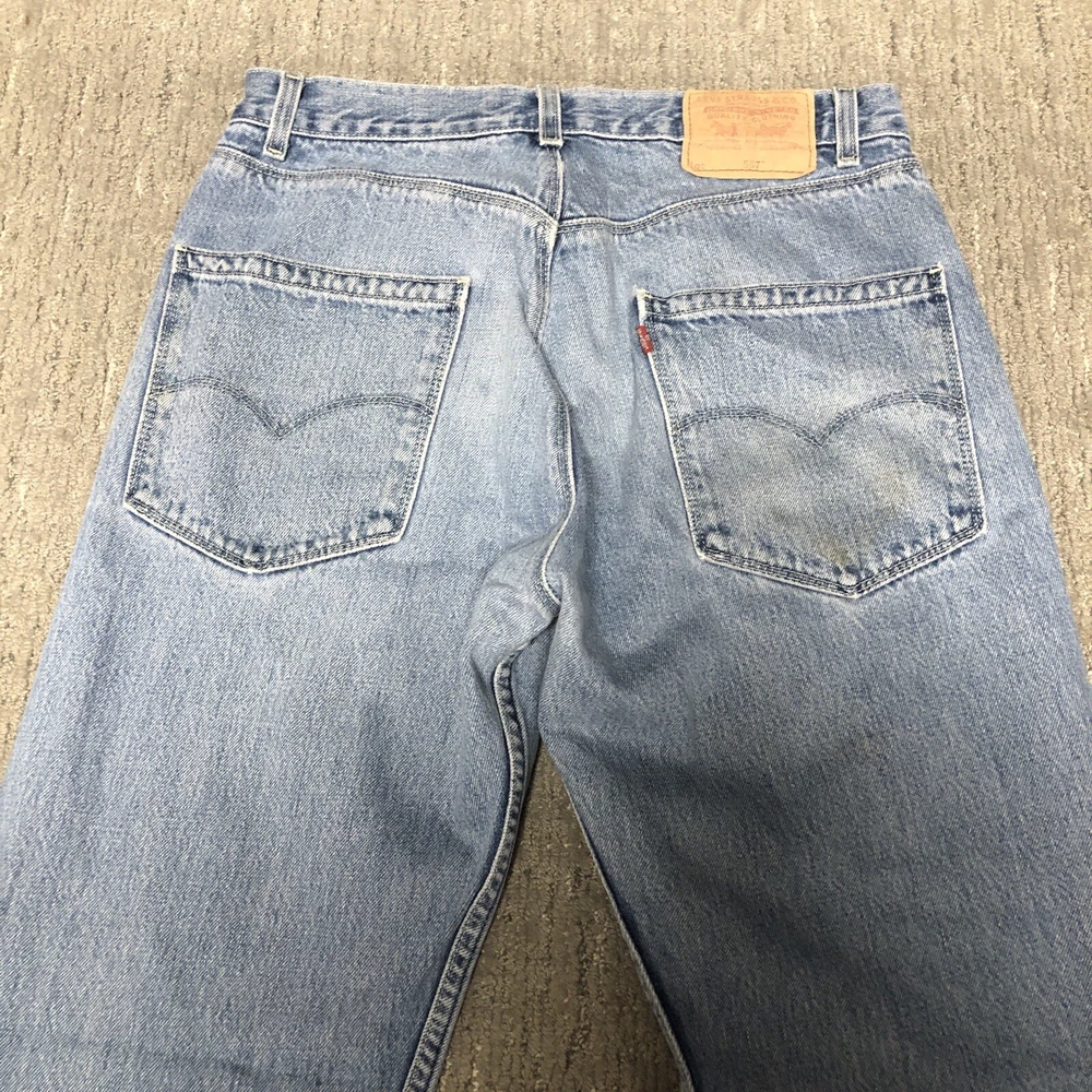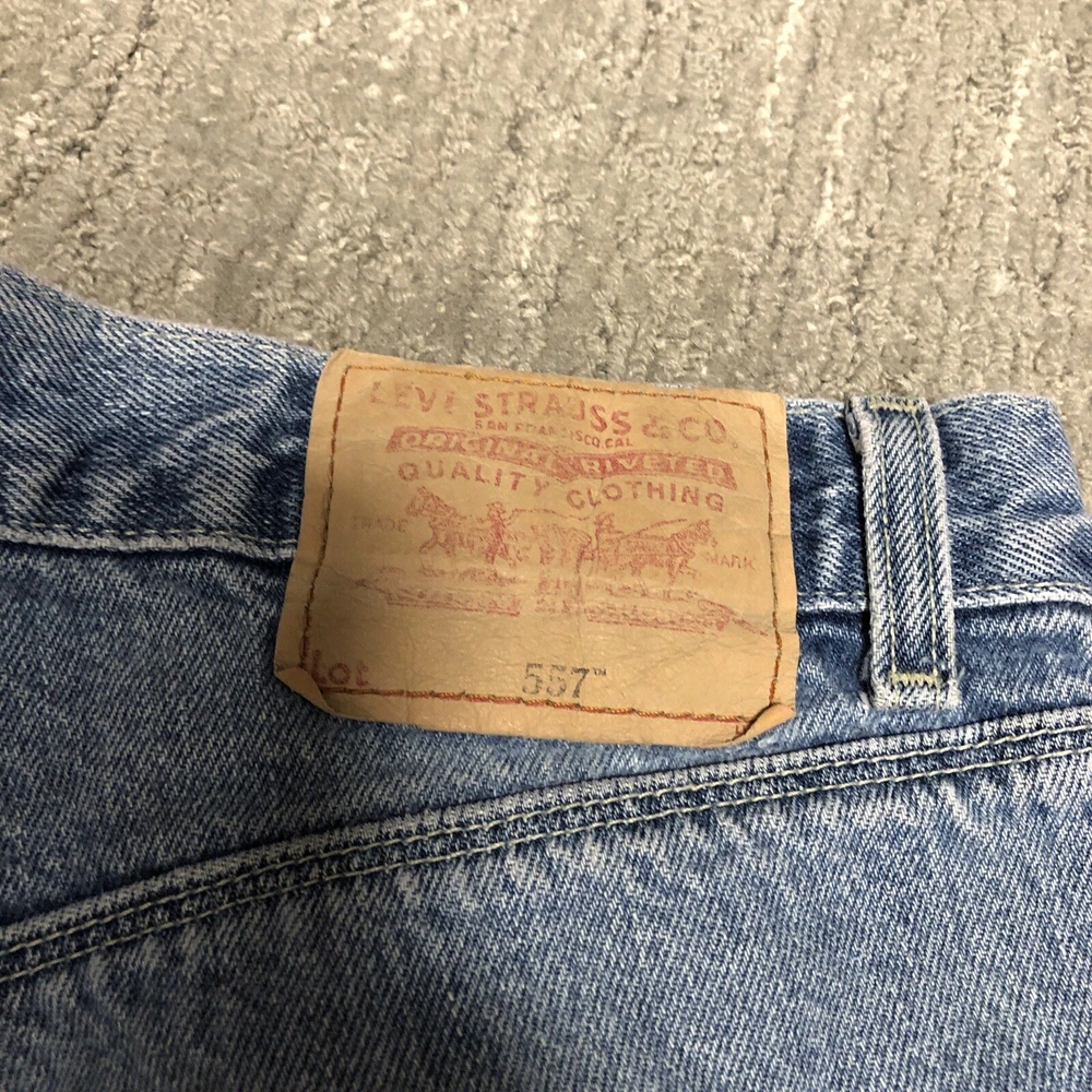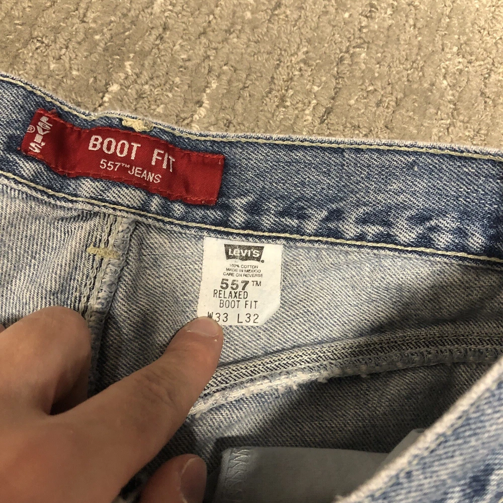 Vintage Levi’s 557 Relaxed Boot Fit Jeans Men Size 33x32 Blue Faded Y2K Western Preowned Some distressing at ankle openings. Some stains on front of legs and back pocket. Light distressed spot under fly and stress at corner of back pocket. See measurements in pictures Overall still good condition with plenty of life to them. Please see pics and ask questions before purchasing Thanks!