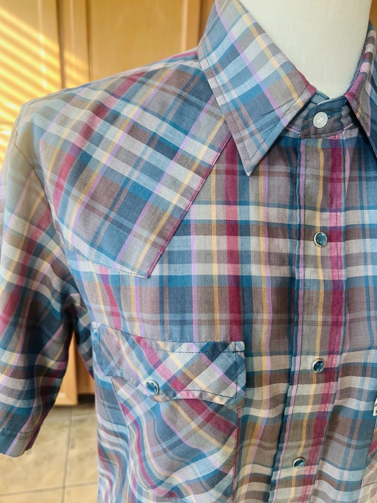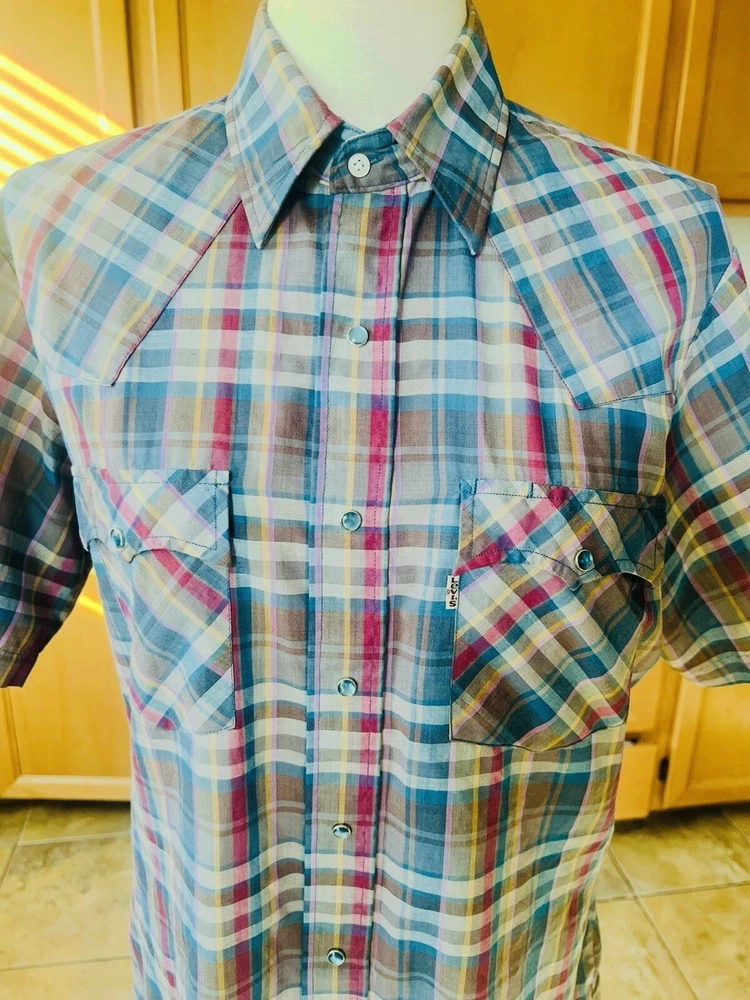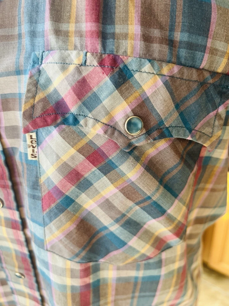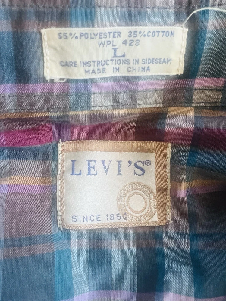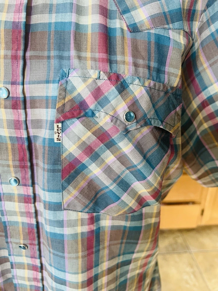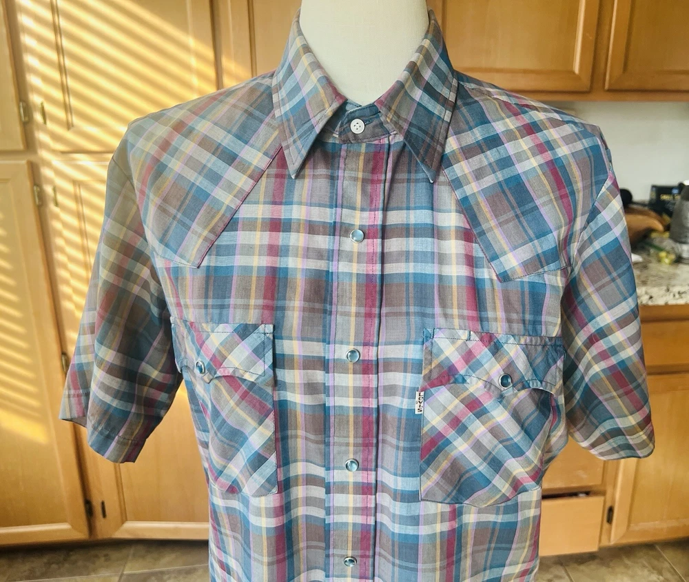 Vintage Levis Shirt Adult S Plaid Short Sleeve Pearl Snap Button Up Mens Western. In good used condition.
