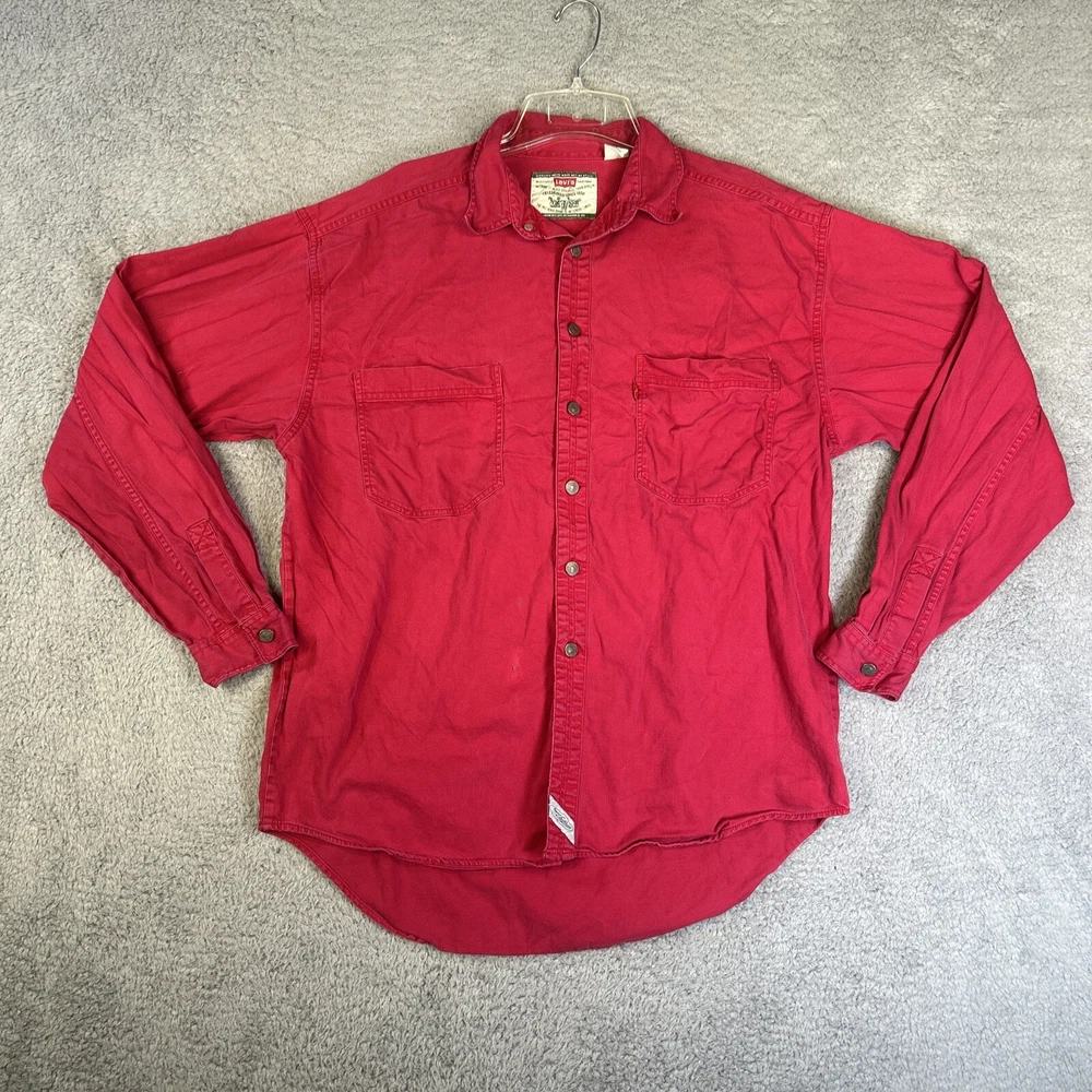 Vintage Levis Shirt Mens Large Red Metal Button Cowboy Western Rodeo Work 90s