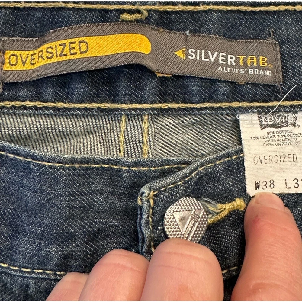 This is a vintage pair of oversized SilverTab shorts in a size 38. They were jeans that had been cut off to a 13” inseam. In great condition
