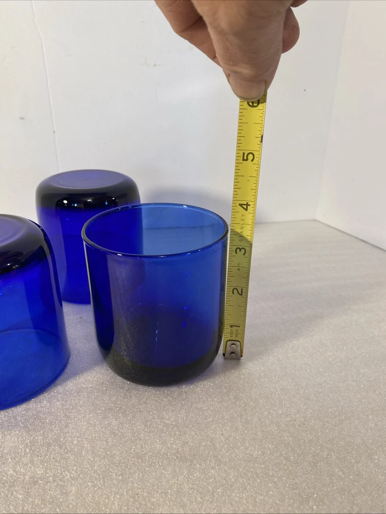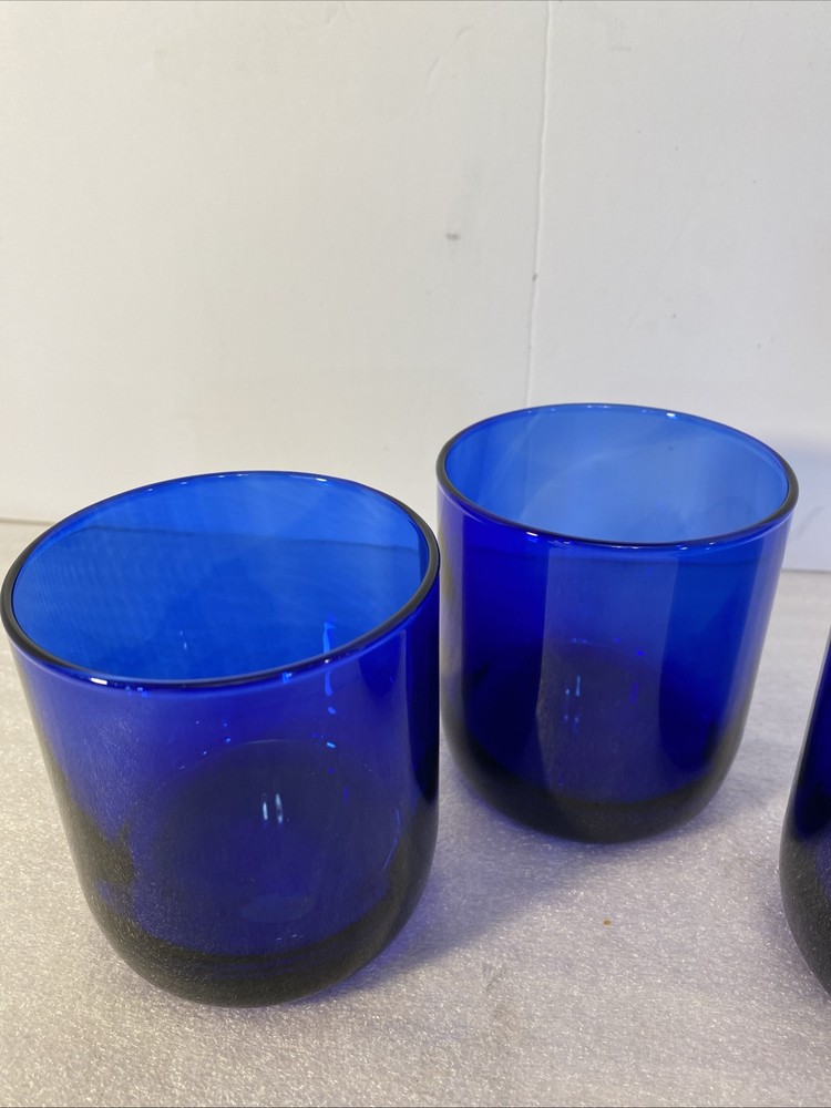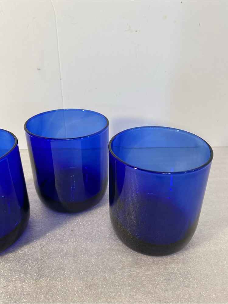 Vintage Set of 3 Libbey 8 oz. Cobalt Blue Round Bottom Rock Glasses. Condition is Used. Shipped with USPS Ground Advantage.