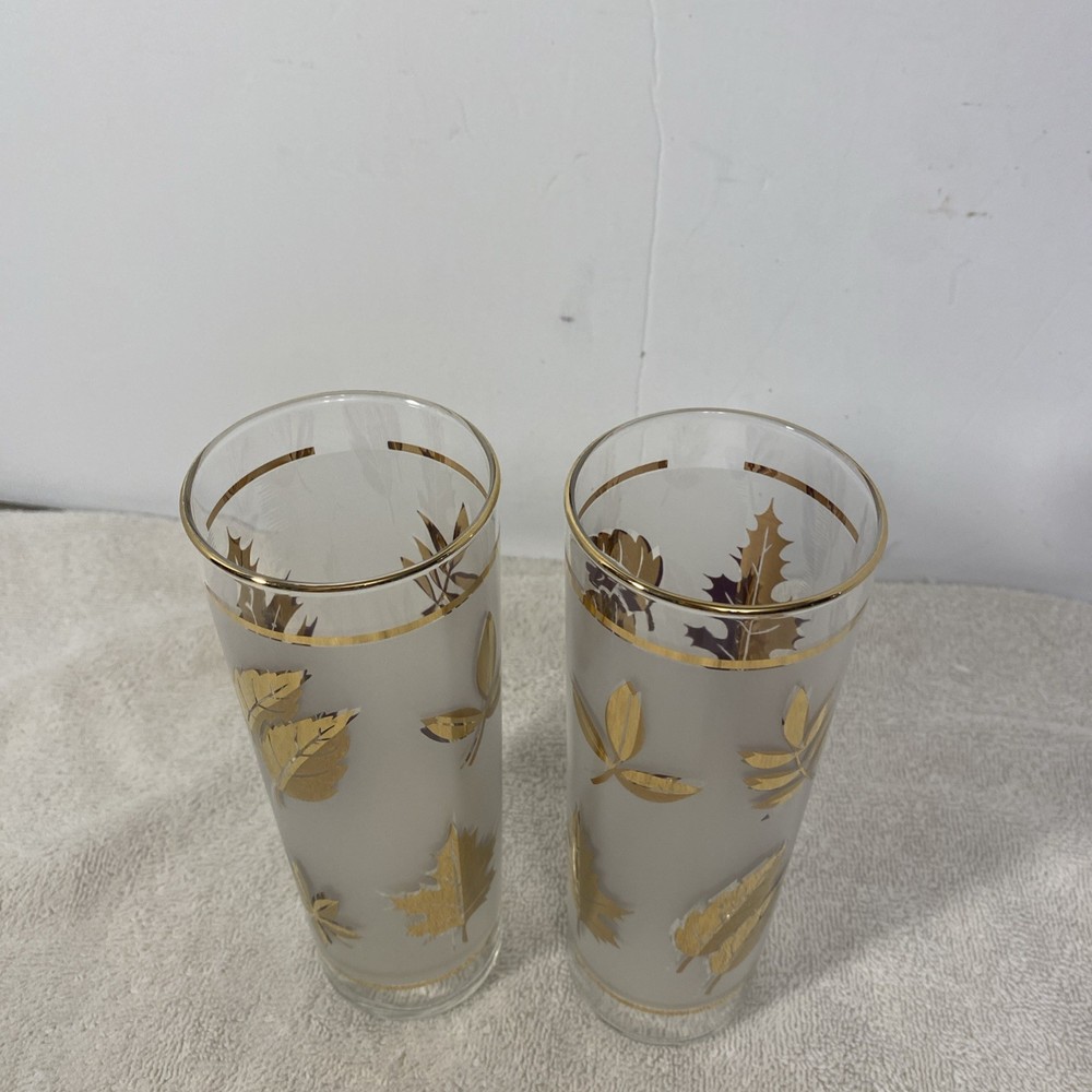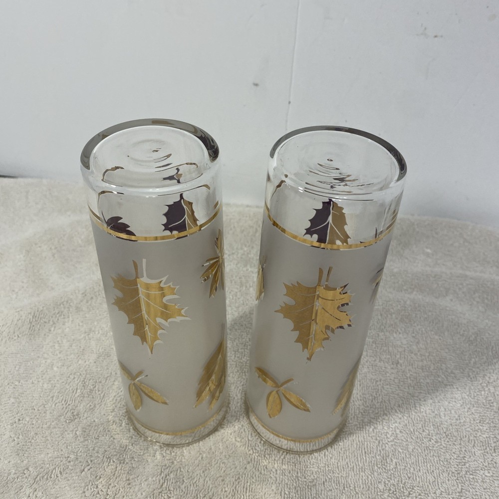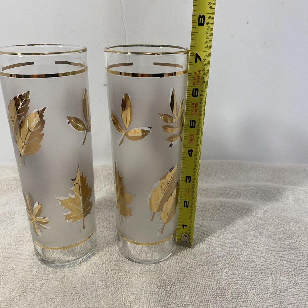2 Vintage Libbey Tom Collins Gold Leaves Frosted 7” Highball Cocktail Glasses. Condition is Used. Shipped with USPS Ground Advantage.