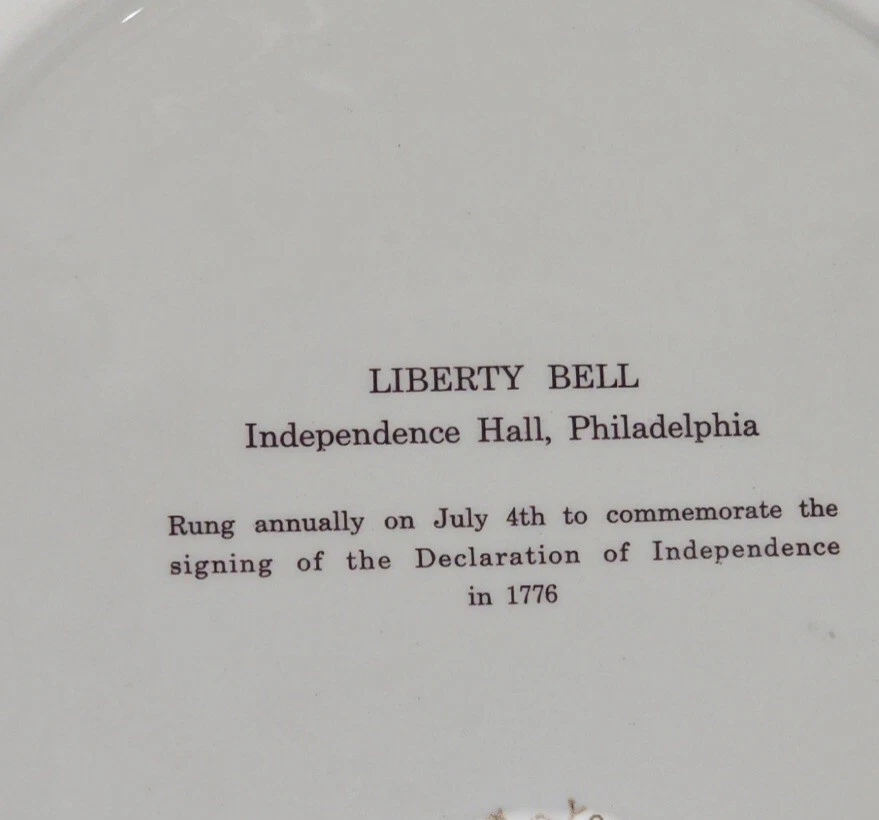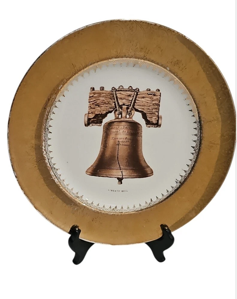Vintage Liberty Bell Plate Heavy 22K Gold Trim Souvenir 10" Plate Atlas China/G