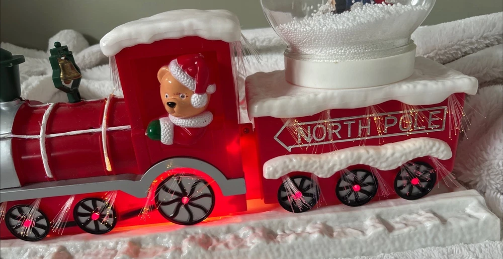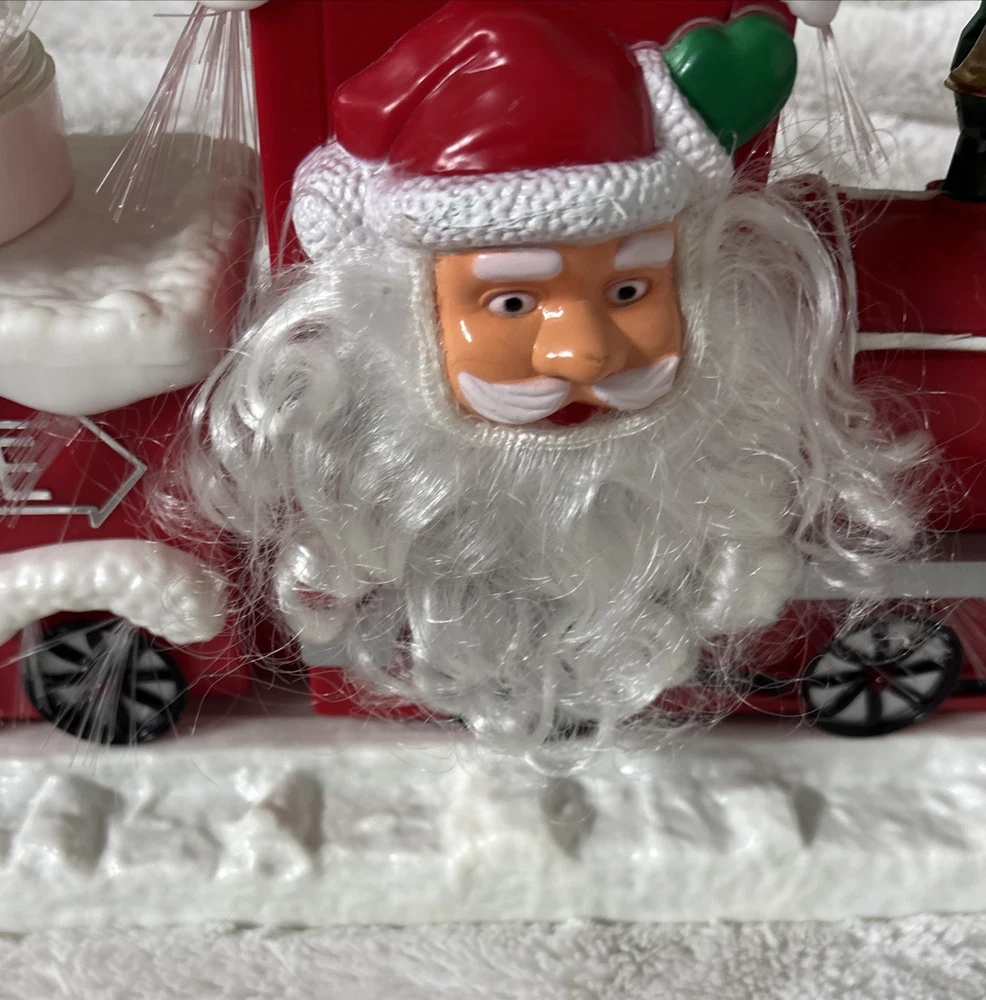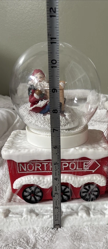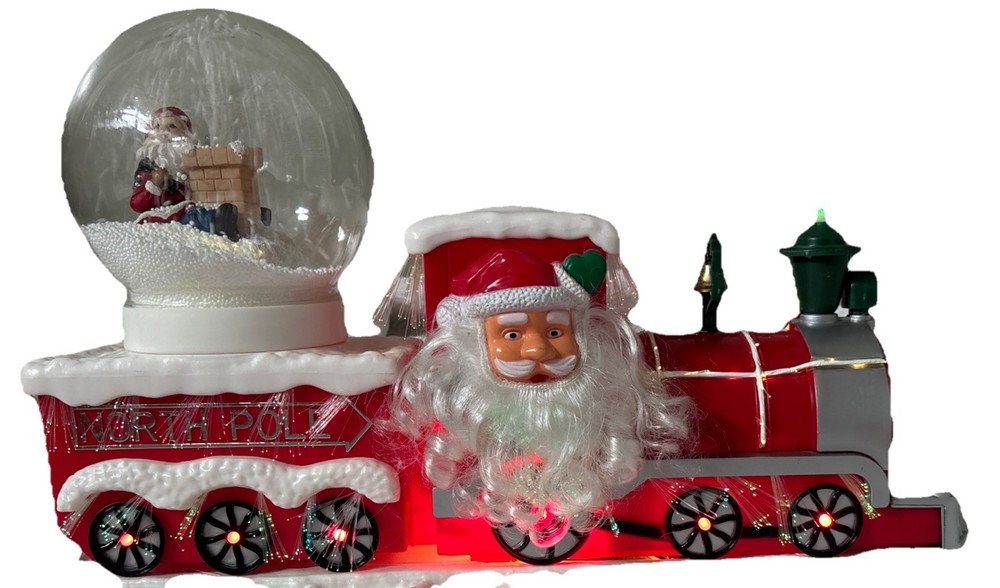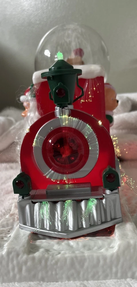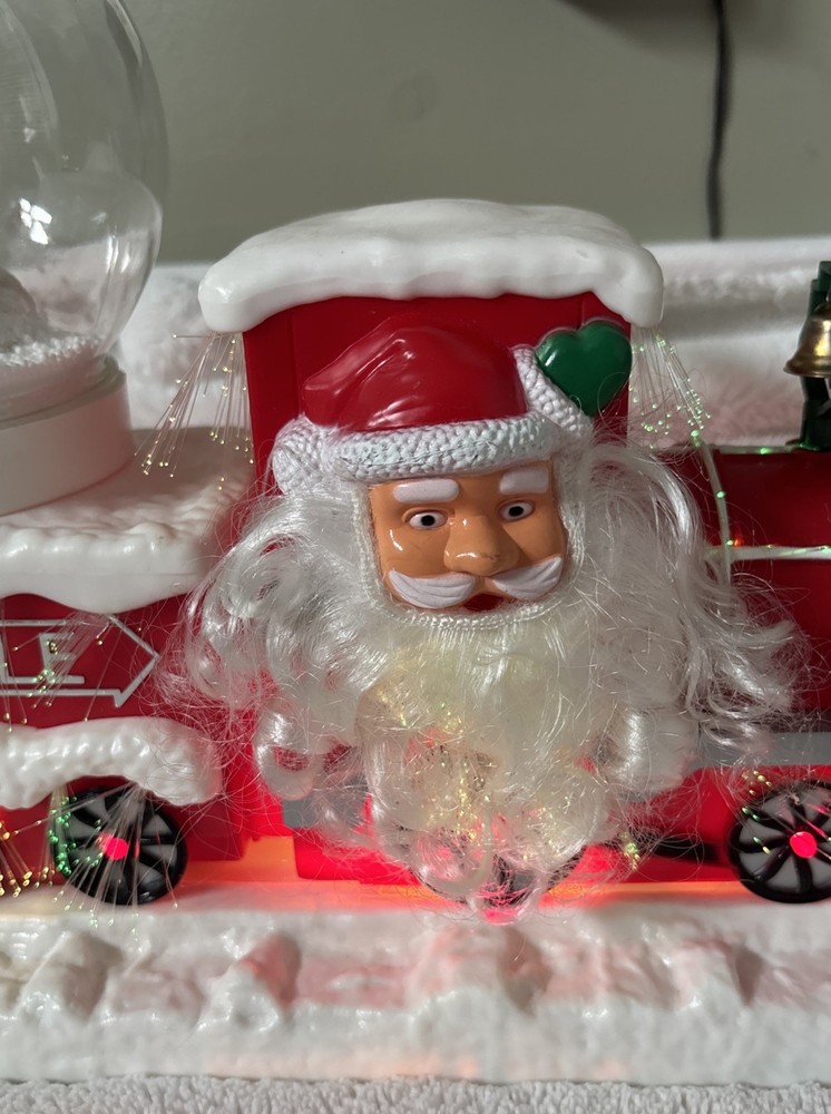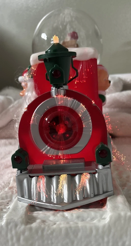 The Vintage Musical Light Up Santa Train Snow Globe is a classic Christmas collectible featuring a novelty design with a rectangular shape and a festive multicolor plastic material. This unique snow globe plays a musical tune and lights up, making it a fun and nostalgic addition to any holiday decor. Perfect for teens, boys, adults, kids, and girls alike, this Santa-themed snow globe is a charming and whimsical piece that will bring joy to collectors and Christmas enthusiasts alike. Plays jingle bells. No box. Comes with adapter plug Works