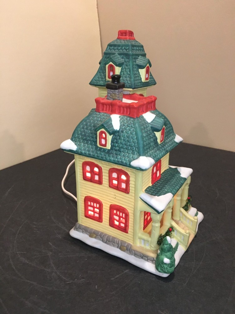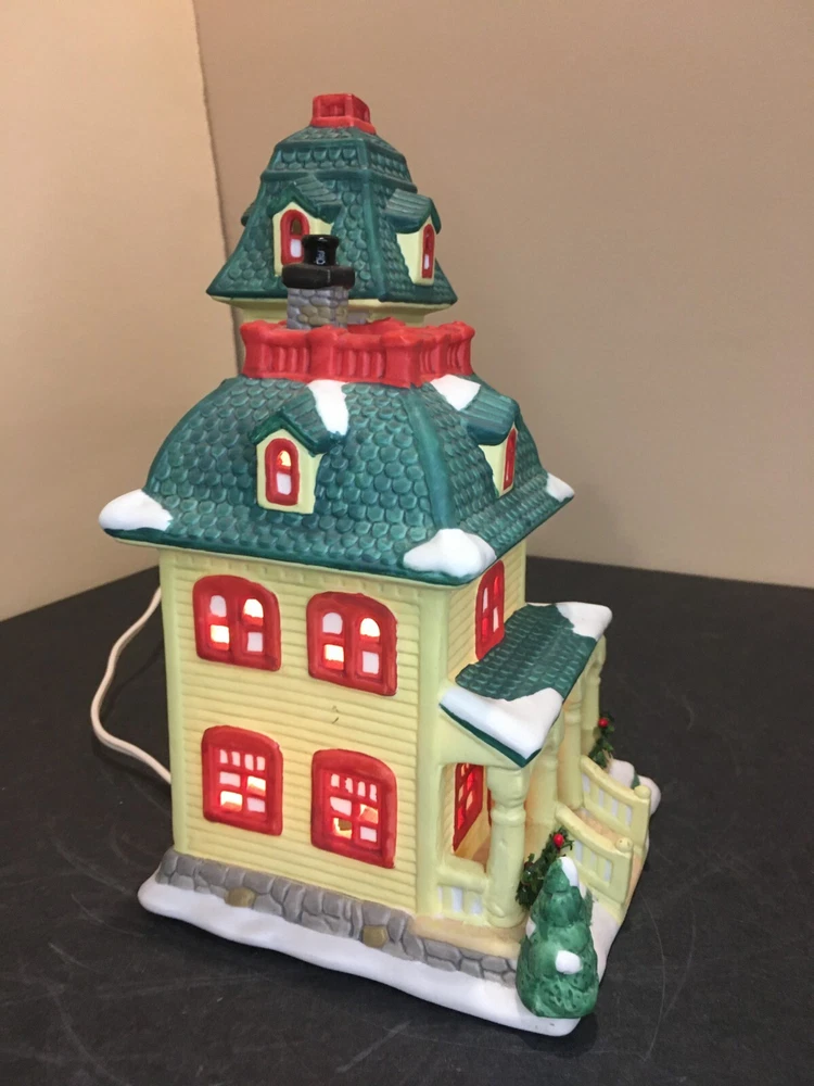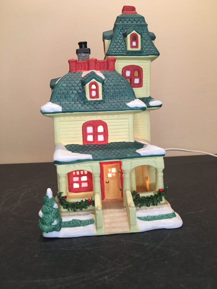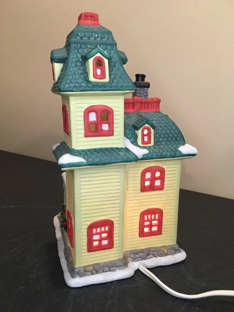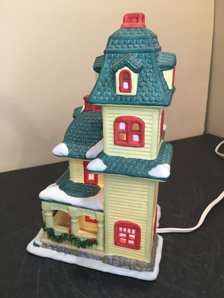 **Vintage SEASONAL SPECIALTIES LIGHTED CHRISTMAS VILLAGE LEMON VICTORIAN HOUSE Vintage Seasonal Specialties Lighted Christmas Valley Village Lemon-Yellow & Green 3-Story Victorian House. Excellent condition, Includes light cord. 1996 Approx 5" x 5 1/2" x 9" tall. ALL PHOTOS ARE OF THE ACTUAL ITEM BEING SOLD.