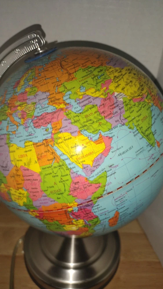 Type: Tabletop Globe Department: Kids, Teens, Adults Color: Multicolor EC Range: N/a Material: Metal, Plastic Power Source: Corded Features: Illuminated, Levitating, Rotating, Smooth MPN: None Brand: Globe