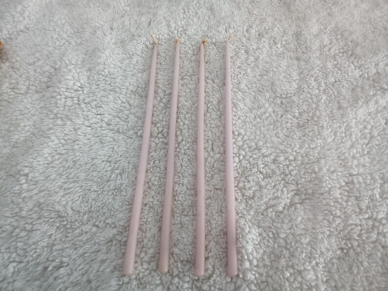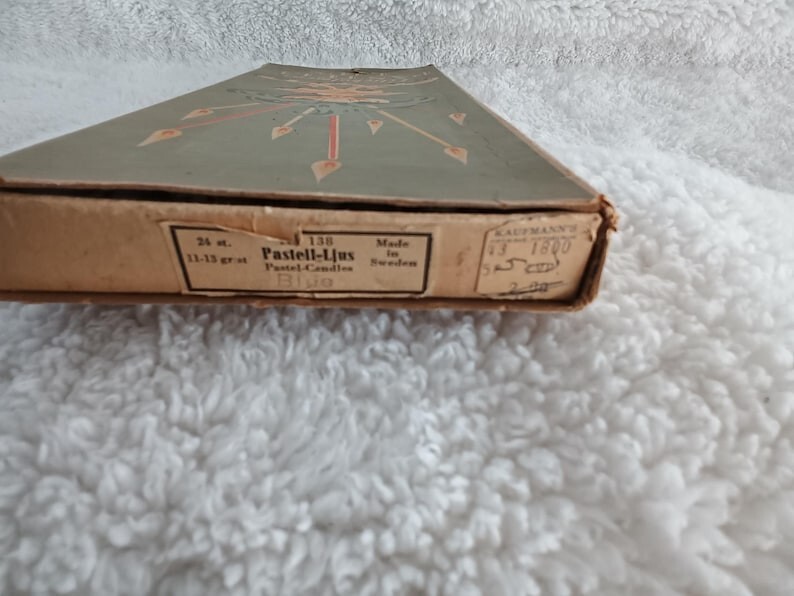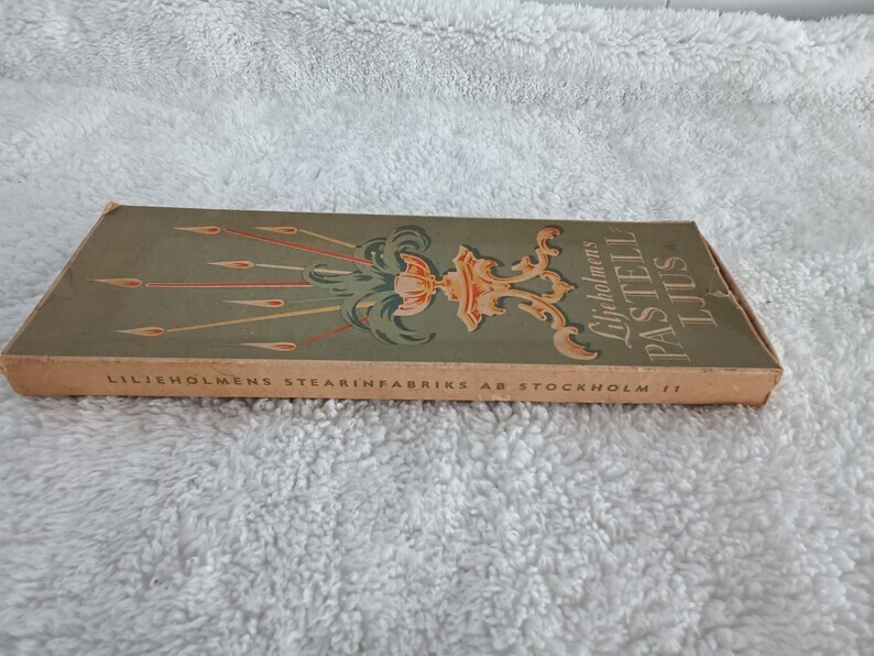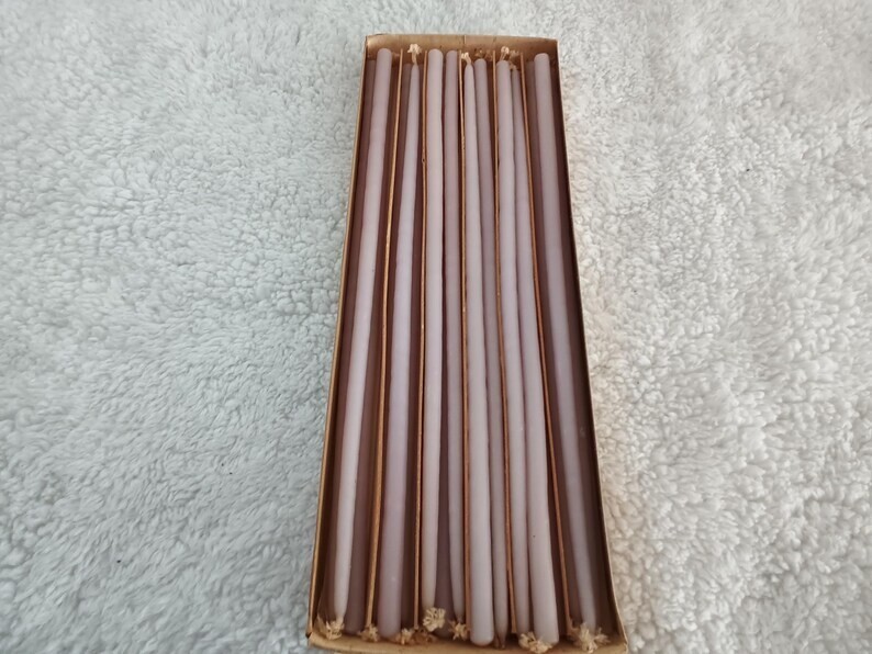 Liljeholmens Pastell Ljus Light Lilac Purple Skinny Tall Taper Candles In Box - Made in Sweden These wonderful vintage skinny taper candles are in original box. There are 21 candles in the box. The box, the candles, and the wicks show discoloration and wear from age. Each taper candle measures approximately 12" including wick. They are a very pale light lilac purple color. This is such a wonderful vintage find!