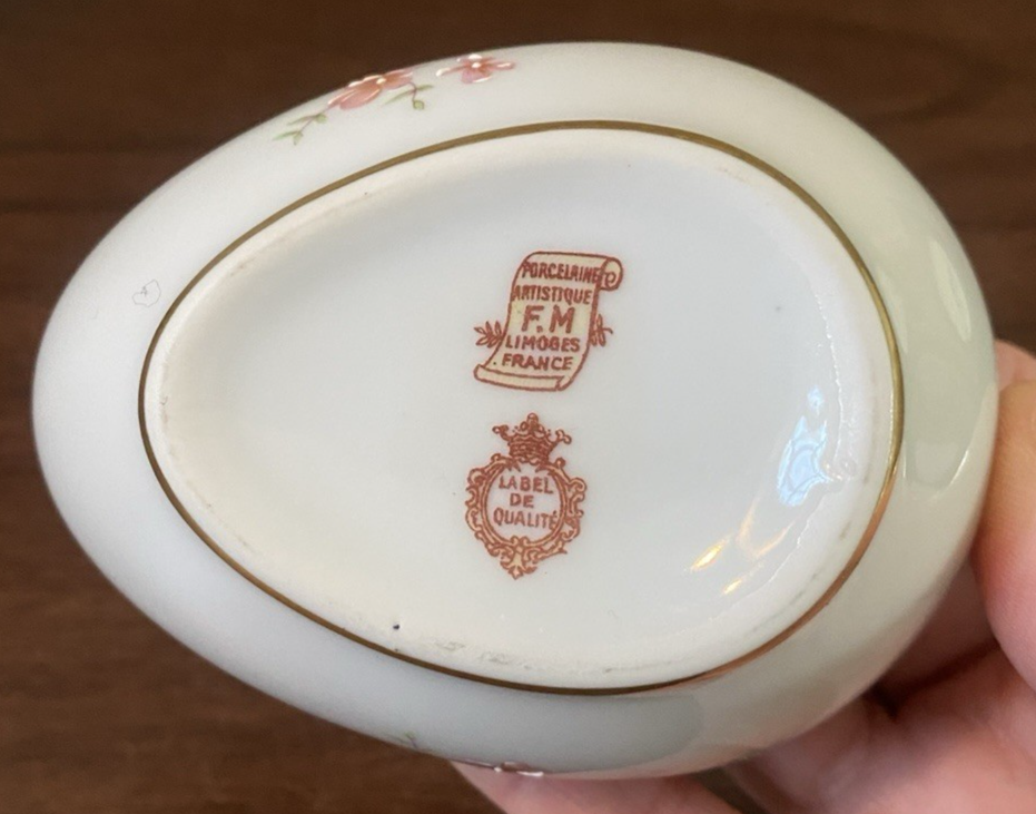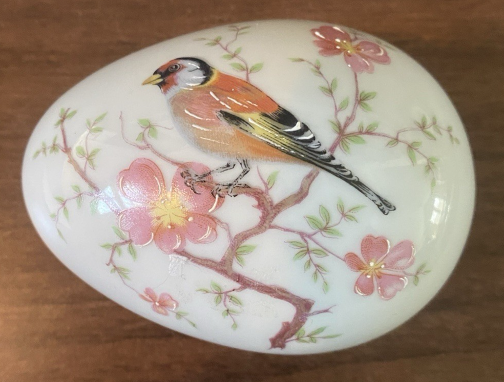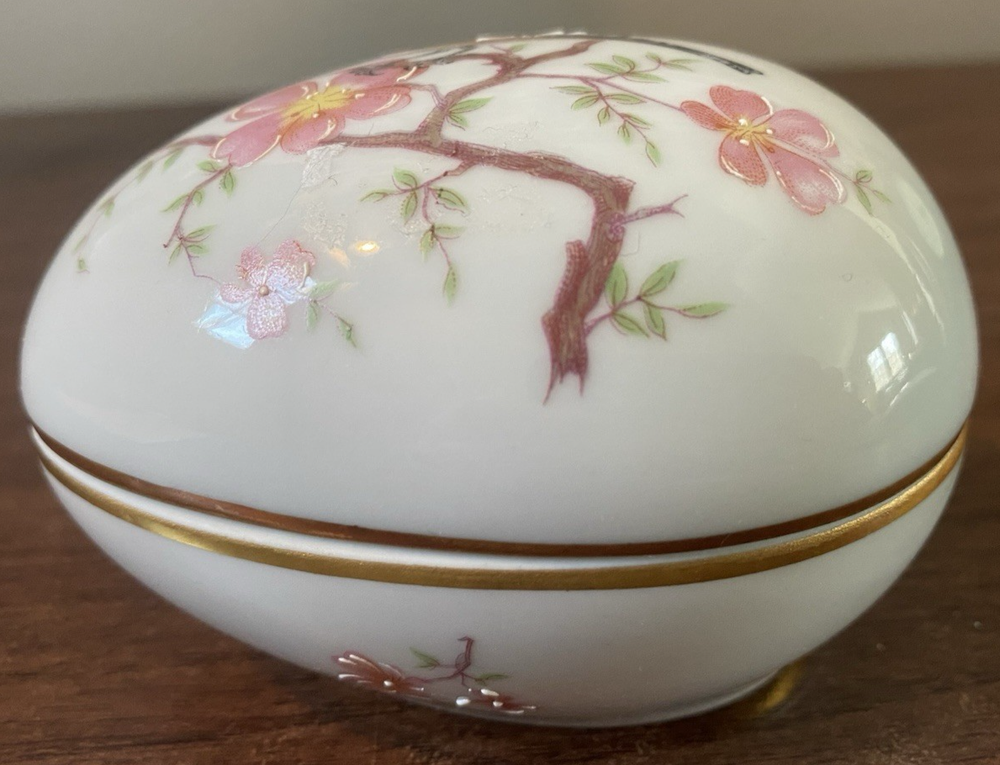 Vintage Limoge Egg-Shaped Trinket Dish with Painted Bird & Floral Motifs