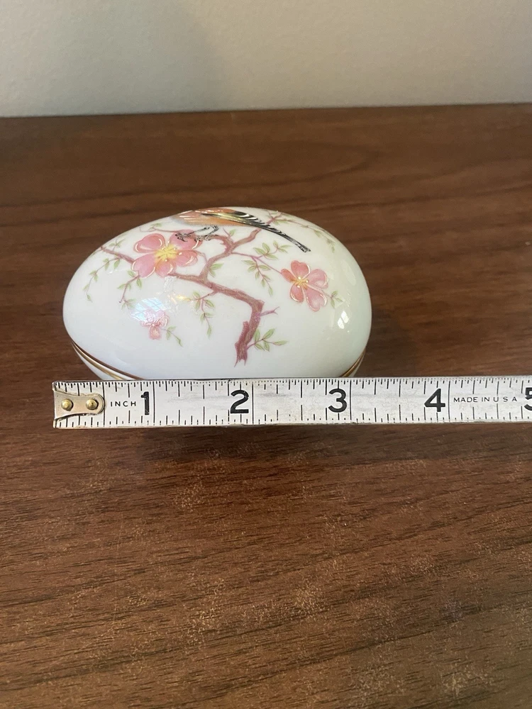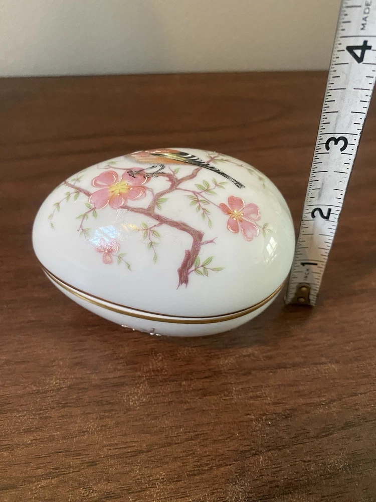 Collection: Keepsake Boxes Subject: Egg Seller Notes: “no chips or cracks” Original/Reproduction: Original Type: Trinket Box Color: Multicolor Pattern: Floral Finish: Painted Brand: Bird