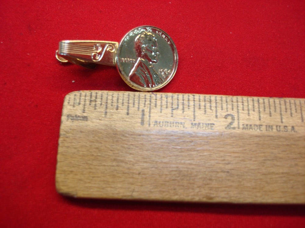 VINTAGE " -LINCOLN CENT TIE CLIP WITH GOLD TONE METAL VINTAGE " -LINCOLN CENT TIE CLIP WITH GOLD TONE METAL Description ********* HERE'S A NICE VINTAGE 1 1/2" TIE CLIP WITH 1 1964 D LINCOLN CENT IN GOLD TONE METAL. VERY NICE CONDITION. BE SURE TO CHECK OUT THE PHOTOS. PLEASE NOTE : OUR PRICES ARE FIRM. THEY ARE THE LOWEST WE CAN SELL IT FOR. WE DO NOT ACCEPT OFFERS. IF YOU OFFER..YOU WILL BE BLOCKED Terms, Payment and Shipping Information We currently only ship to the United States and through eBay's Global Shipping Program. We will help with shipping and handling charges on multi-auction wins. Shipping is usually $1.00 per auction after the first, unless there are weight or size issues. You must ask for a combined invoice when you are done buying or bidding. Most folks figure the S/H charges into their total price. A careful eBayer who takes the time to study the photos, reads the entire description, and asks pertinent questions is our best customer. The digital images we display have the most accurate color possible. However, due to differences in electronic displays, we cannot be responsible for variations in color between the actual product and your display. We reserve the right to cancel any bid. Be sure to check out our other items: Listing and template services provided by inkFrog