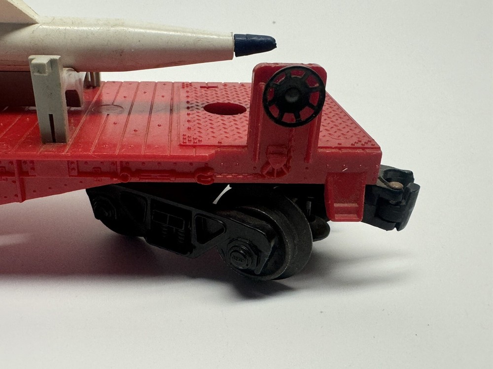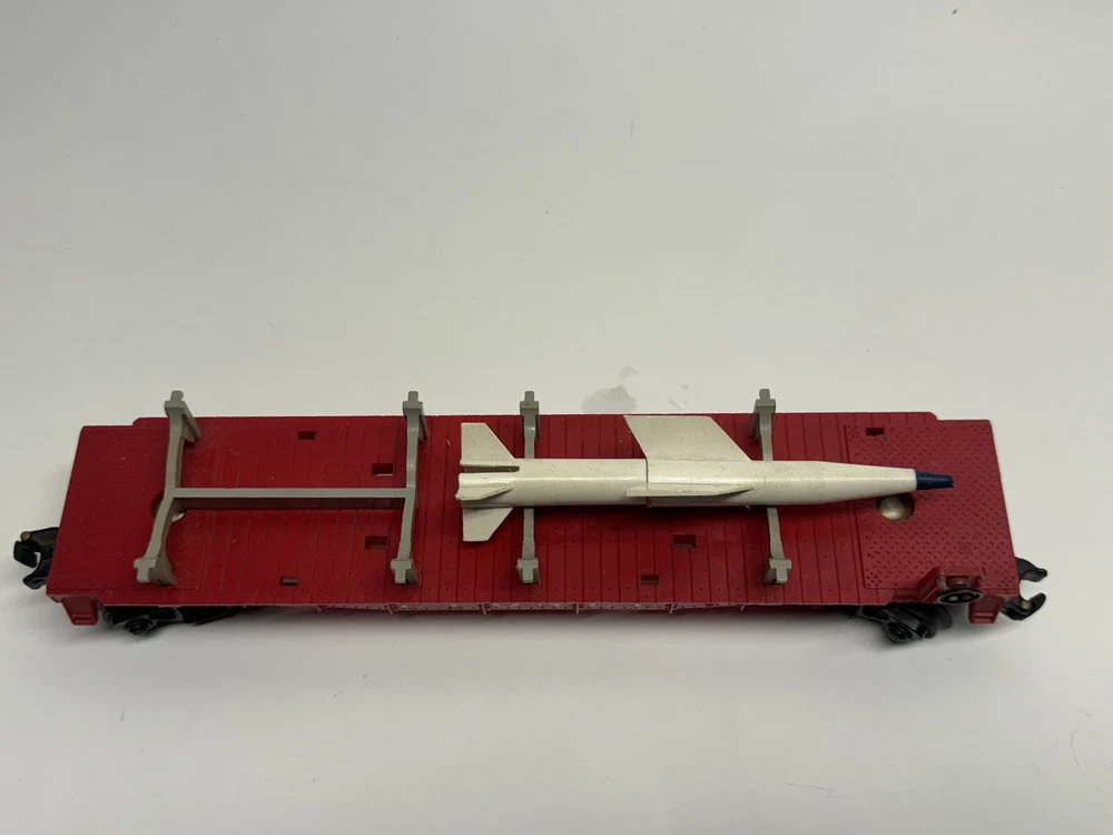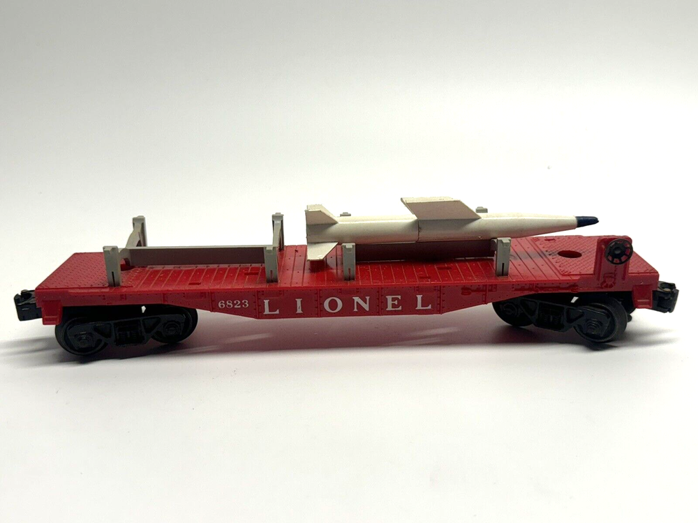 1. Brand: Lionel 2. Item Description: GENTLY USED VINTAGE Lionel 6823 IRBM O Scale Missile Car - Only 1 Missile Inlcuded 3. Condition: This item is in gently used condition. Signs of use include minor scratches and scuffs. Overall, this item is in 85% cosmetic, good condition. This unit is fully working condition. The pictures are taken from the actual item on sale. 4. Color: 5. Included Items: A. Included: comes with everything on the attached photos B. Not Included: 6. Suggested Retail Price: $ 7. Product Features: