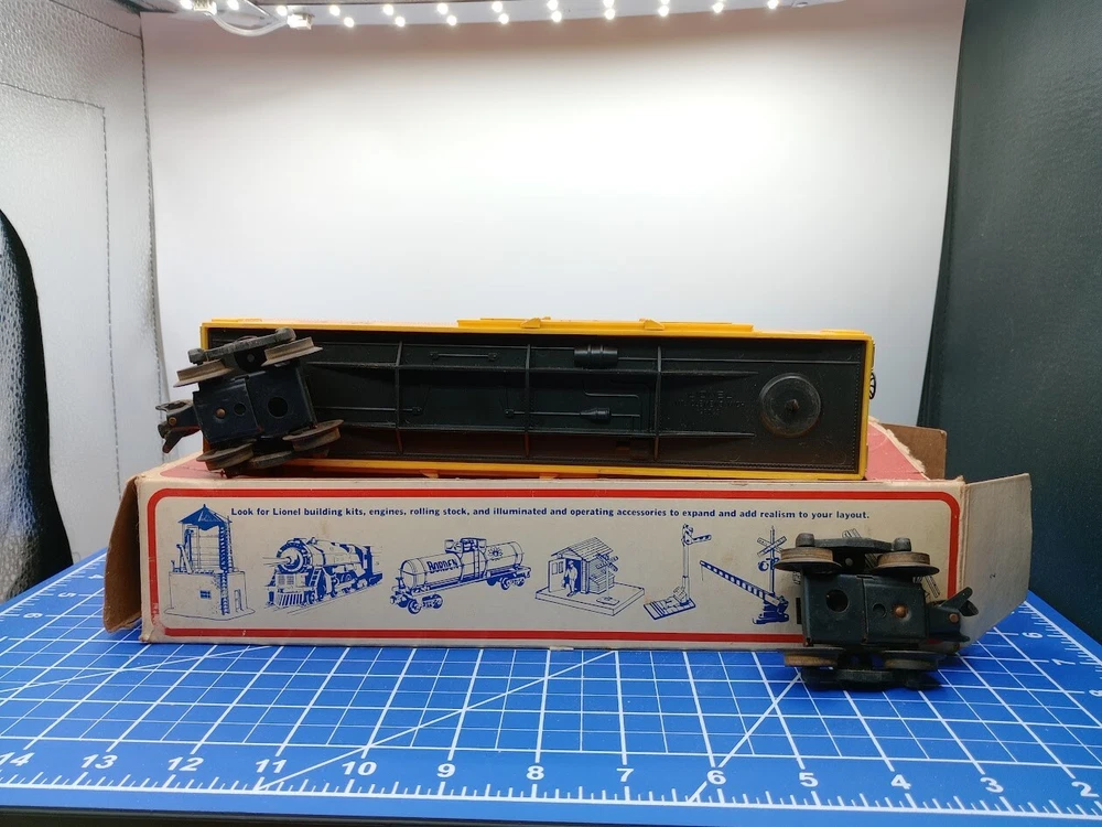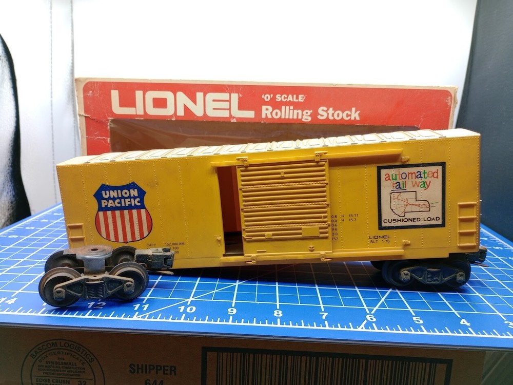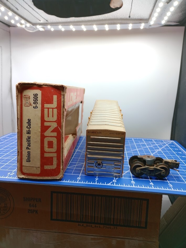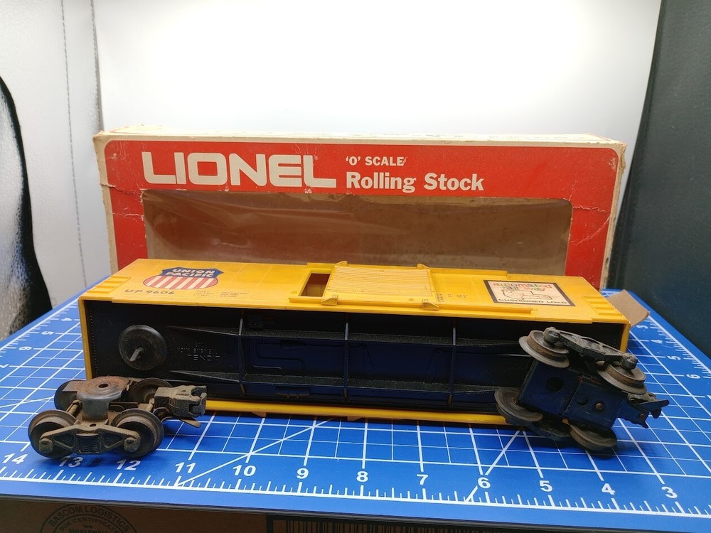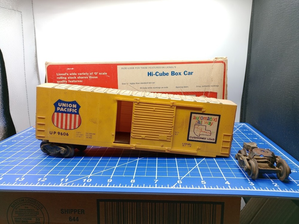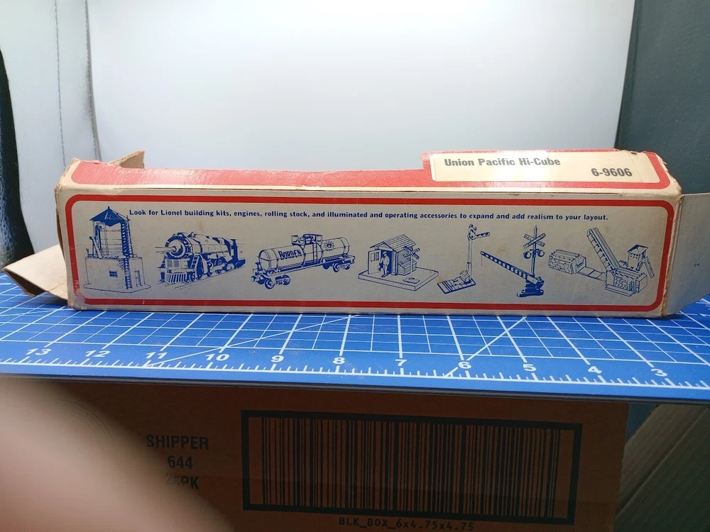 This is a vintage Lionel 6-9606 O Gauge Union Pacific Hi-Cube Boxcar, perfect for any model railroad enthusiast. The boxcar is pre-built and ready to go, with a three-rail system and analog control system. It is made of durable plastic and has a scale of 1:48. The boxcar is in C-2 restoration required grade and has an age level of 17 years and up. It comes with its original box and is a great addition to any collection. The corporate roadname is UP and the power type is AC. This item is perfect for those interested in freight cars, railroads and trains, model railroads and trains, and toys and hobbies. Vintage Lionel 6-9606 O Gauge Union Pacific Hi-Cube Boxcar W/ original box Please Read Before Purchasing We strive to provide a clear and pleasant buying experience for all our customers. Below is important information regarding item descriptions, shipping, returns, and feedback. ITEM DESCRIPTIONS Items are described to the best of our ability and accompanied by detailed photos. Please review them carefully before purchasing. Only items pictured and described are included in the sale. For items sold "AS-IS," functionality may be unknown, and they are priced accordingly. Refunds for "AS-IS" items will only include the purchase price, not shipping costs. If you have additional questions or require further details, feel free to ask before bidding or buying. SHIPPING INFORMATION Combined Shipping: If purchasing multiple items, please request an invoice before payment to ensure accurate combined shipping costs. Items will be shipped within 24 hours of payment receipt (excluding weekends and holidays). Payments received after noon EST on Fridays will ship the following business day. International shipping is available—please contact us with any questions. We carefully package items, but in the rare event of damage during transit, please contact us to resolve the issue. RETURNS We abide by eBay's Money Back Guarantee. Items can be returned within 30 days under the following conditions: Defective/Damaged Items: A full refund will be issued after the item is returned and inspected. "AS-IS" or Buyer’s Change of Mind: Refunds will include the purchase price only, with the buyer responsible for shipping costs. Please contact us before initiating a return request to discuss solutions. IMPORTANT NOTES Items may show signs of long-term storage, including blemishes, dust, or minor wear. Some components, such as couplers, brake wheels, steps, or ladders, may be missing or damaged. Items may require cleaning for optimal appearance. Photos are taken under lighting that may slightly affect color or hue. Feel free to request additional photos in natural lighting or a more detailed description if needed. FEEDBACK We value your satisfaction and appreciate positive feedback. If there are any concerns, please contact us before leaving neutral or negative feedback—we’ll work to resolve the issue promptly. Thank you for your interest in this item! We look forward to a smooth and satisfying transaction.
