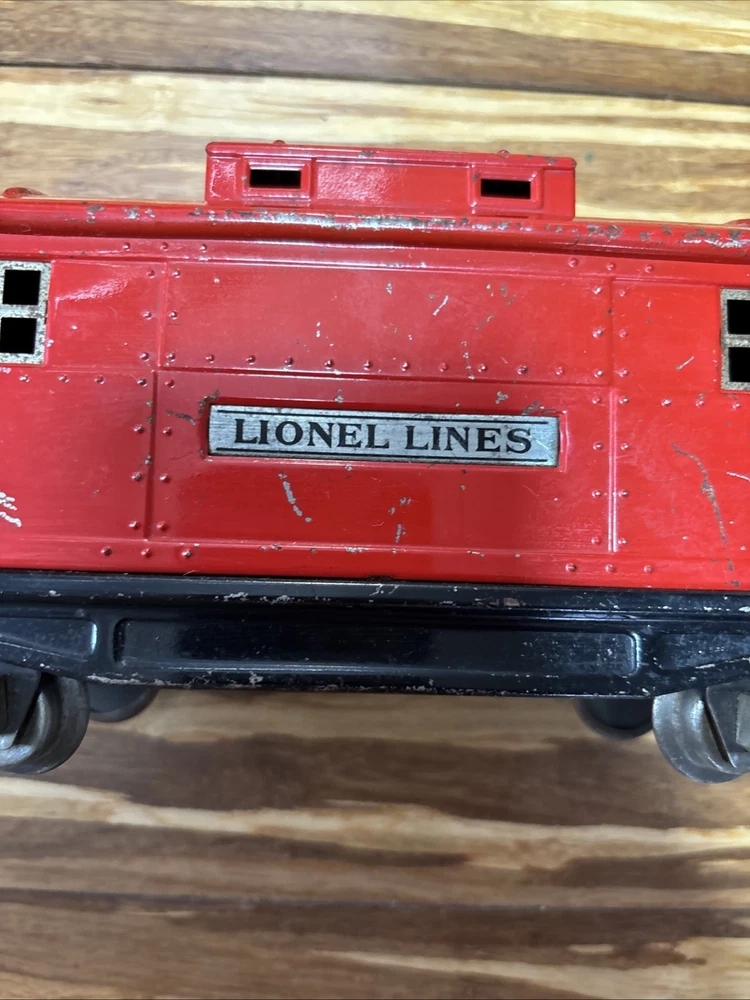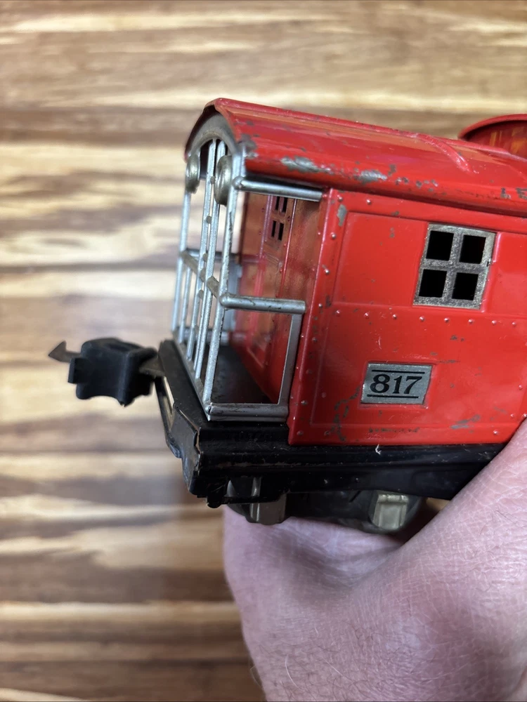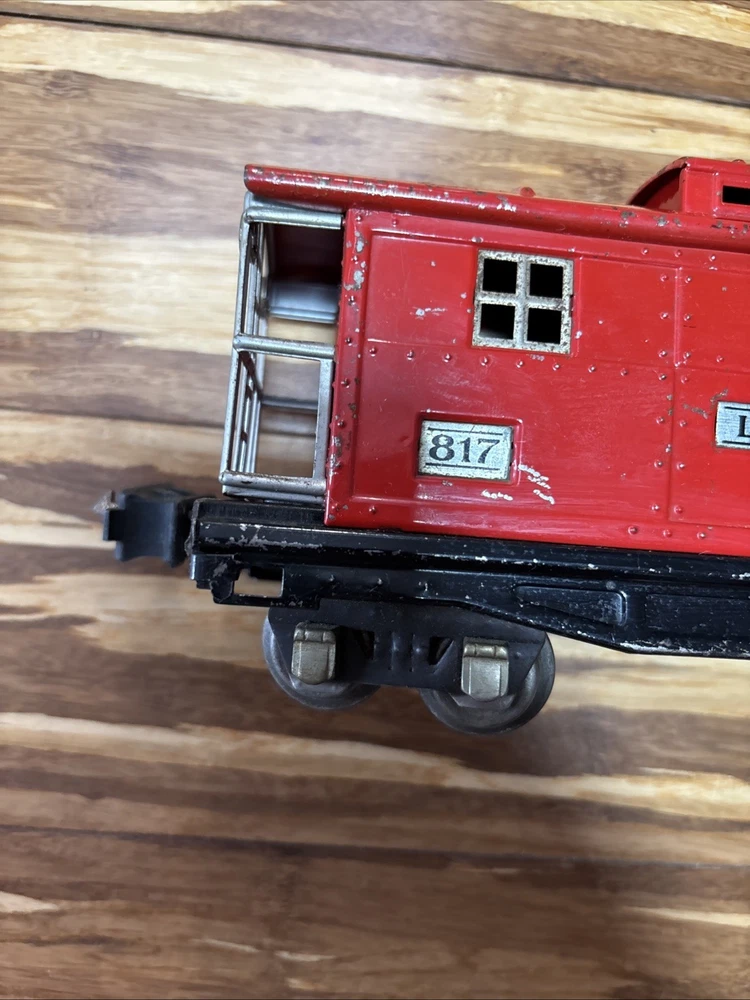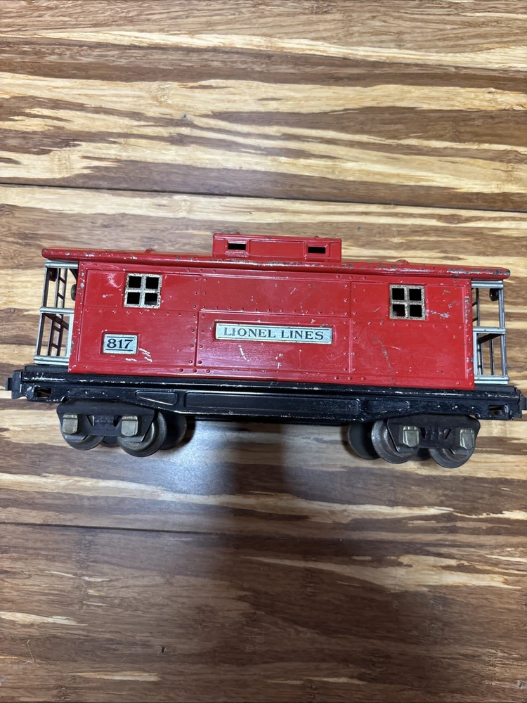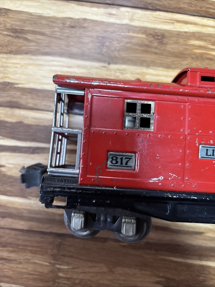 Year Manufactured:1934Material:MetalVintage:YesBrand:LionelGauge:ORail System:Three-Rail SystemMPN:817Country/Region of Manufacture:United StatesColor:Red, PeacockTheme:TransportationType:Caboose