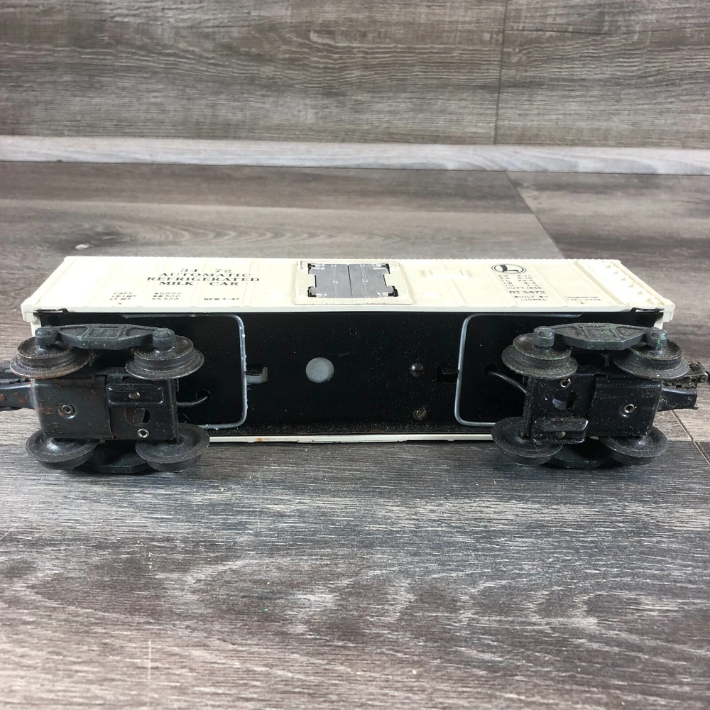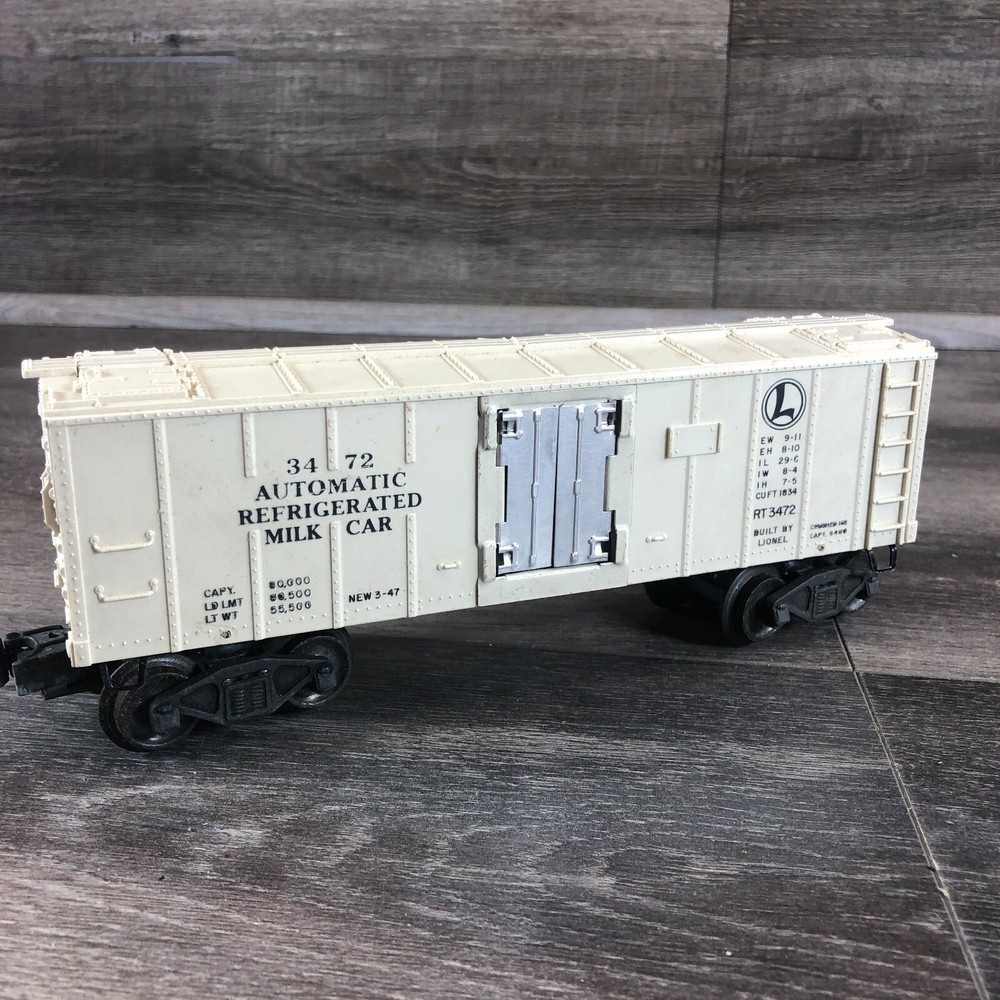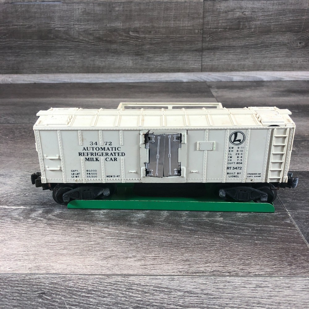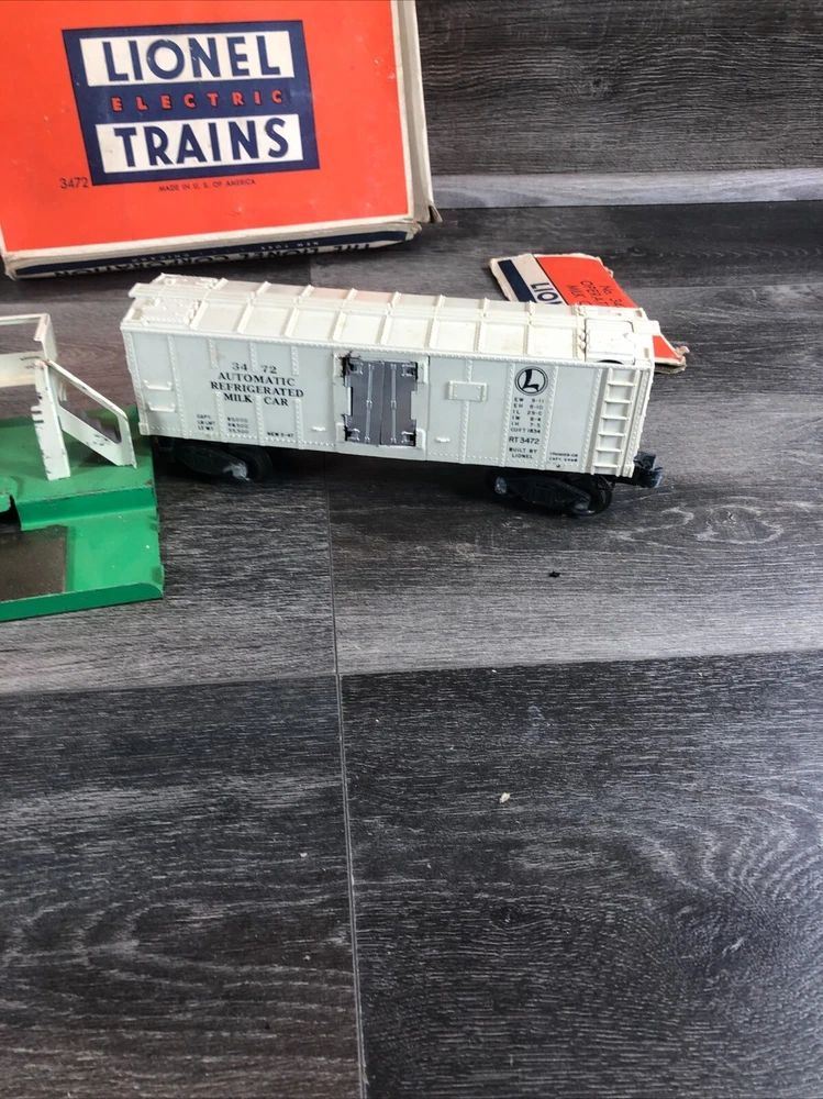 Vintage Lionel 3472 Automatic Refrigerated Milk Car w/ Platform – O Gauge Description: Up for sale is a Vintage Lionel 3472 Automatic Refrigerated Milk Car with its original loading platform . This iconic postwar O gauge accessory is known for its action feature — it ejects milk cans onto the platform when activated with the proper track section (not included). This set is a favorite among collectors and model railroad enthusiasts due to its detailed design and fun, interactive function. Item Condition: Milk car is in good vintage condition with minor cosmetic wear Loading platform included and in solid shape No track activator included Details: Model: Lionel 3472 Scale: O Gauge Era: Postwar Includes: Milk car, platform Whether you’re a collector or building a postwar Lionel layout, this piece adds a fun interactive element. Please review all photos and feel free to message with questions!