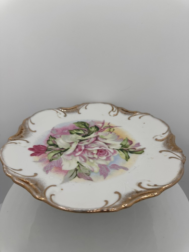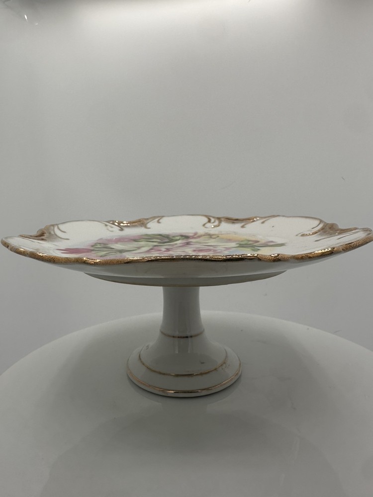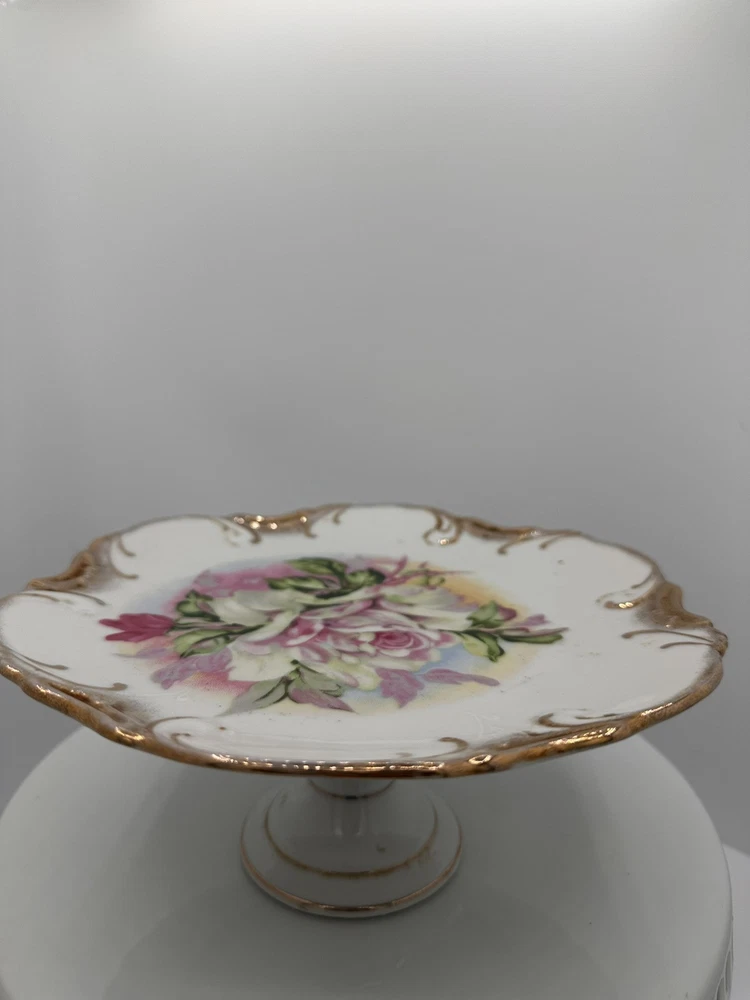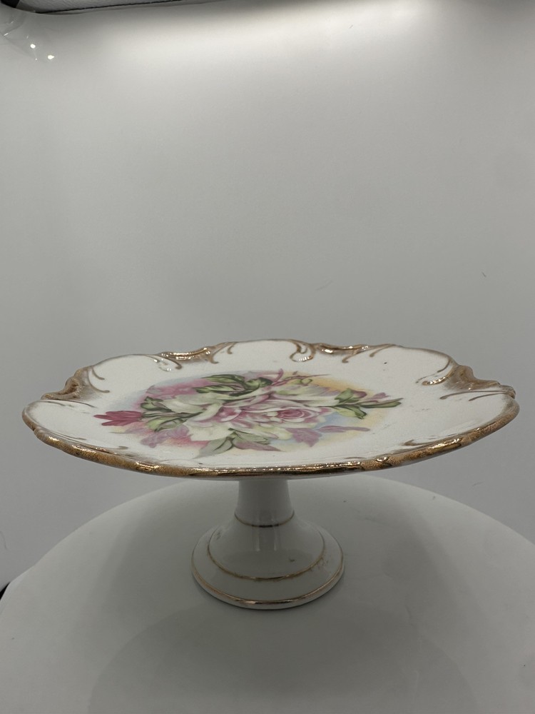 1. This vintage cake stand is absolutely stunning! The delicate scalloped rim and elegant gold accents add a touch of timeless charm. The floral bone china design is beautifully detailed, making it perfect for special occasions or everyday display. The glossy finish and sturdy build show no flaws—it’s clearly well-crafted. A gorgeous piece that elevates any table setting!