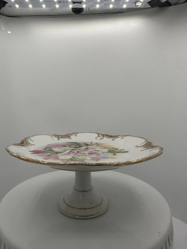 Features: Decorative Vintage: Yes Type: Cake Stand Number of Items: 1 Antique: No Brand: Lipper And Mann Occasion: All Occasions Material: Bone China Shape: Round Backstamp: Printed Pattern: Floral Color: White Production Technique: Pottery Finish: Glossy Theme: Floral & Garden Country/Region of Manufacture: United States Production Style: Art Pottery