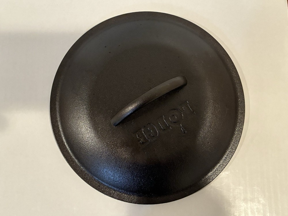 The Vintage Lodge Cast Iron Stew Pot Dutch Oven With Skillet Lid is a two-piece set of collectible cookware that is perfect for cooking on both gas and electric stoves. With a round shape and black color, this Dutch oven is made of sturdy cast iron material and comes with a matching lid. The set is an original piece from the brand Lodge, known for its quality cookware products. This vintage Dutch oven is a unique addition to any kitchen and a must-have for collectors of vintage kitchen items.