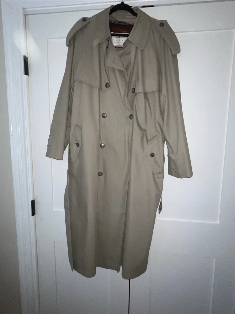 Please see photos. Beautiful vintage trench coat. Great neutral color.