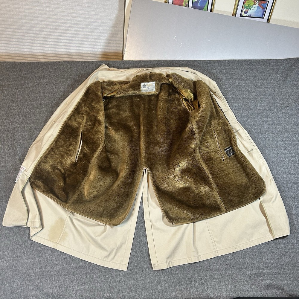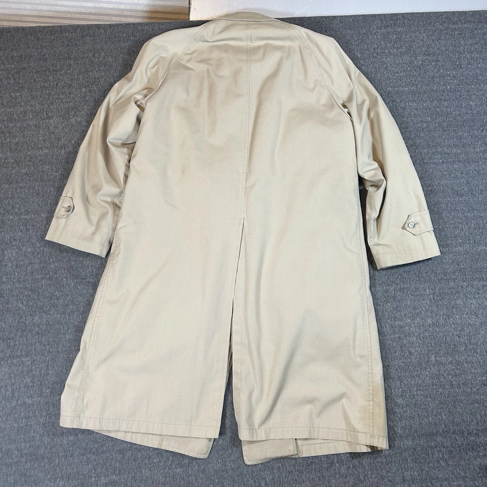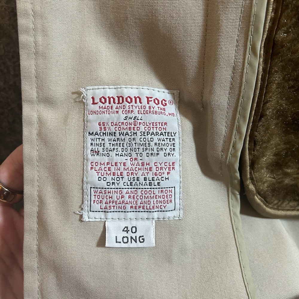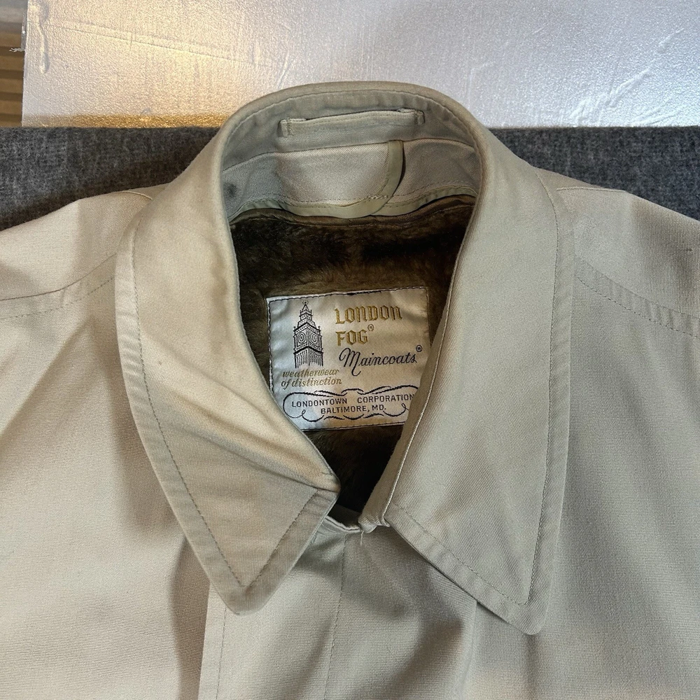 Vintage London Fog Maincoats Tan Trench Coat is in very good condition, with minimal wear from age and use. Please see Photos for Condition of Trench Coat. This vintage 70's London Fog trench coat for women is a classic piece in brown polycotton with a long length and long sleeves. It features a removable fleece lining for added warmth, making it suitable for winter, fall, and spring seasons. The coat has a button closure and is designed with accents like buttons and a buckle, embodying a timeless style that fits occasions ranging from casual outings to business settings. The coat's vintage charm, along with its London theme and classic detective style, adds a unique touch to any wardrobe.