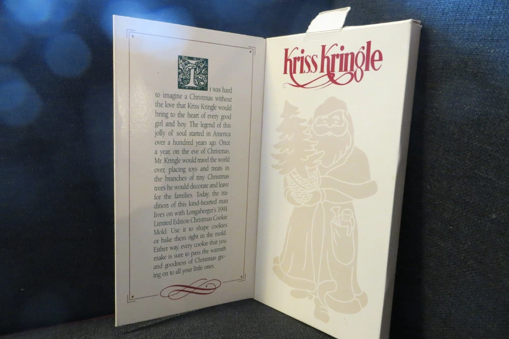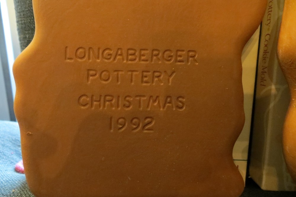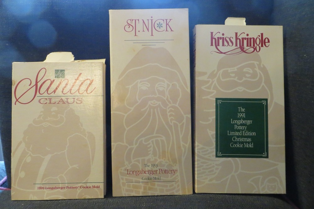3 Longaberger Christmas Pottery Cookie and Craft Molds 1991 (Santa), 1992 (St. Nick, 1993 (Kriss Kringle). Used and in original boxes. See photos.
