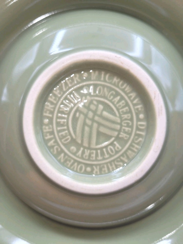 Vintage Longaberger Sage Green Stoneware Chip And Dip Set