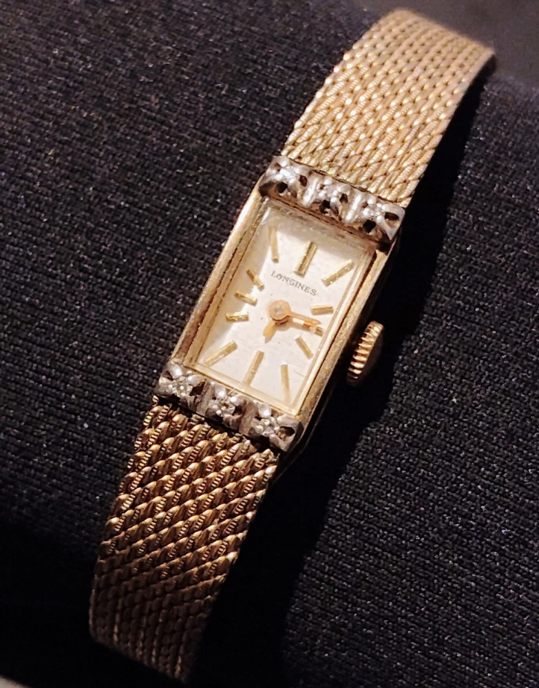 Vintage longines women's watch 10k g.f runs and works. it does have some small scratches as shown in pictures. 7.5" you can make it smaller band clip adjustable check photos for more detail and condition if you have any question contact me by email thank you and good luck (Note no papers no box sell as is.)