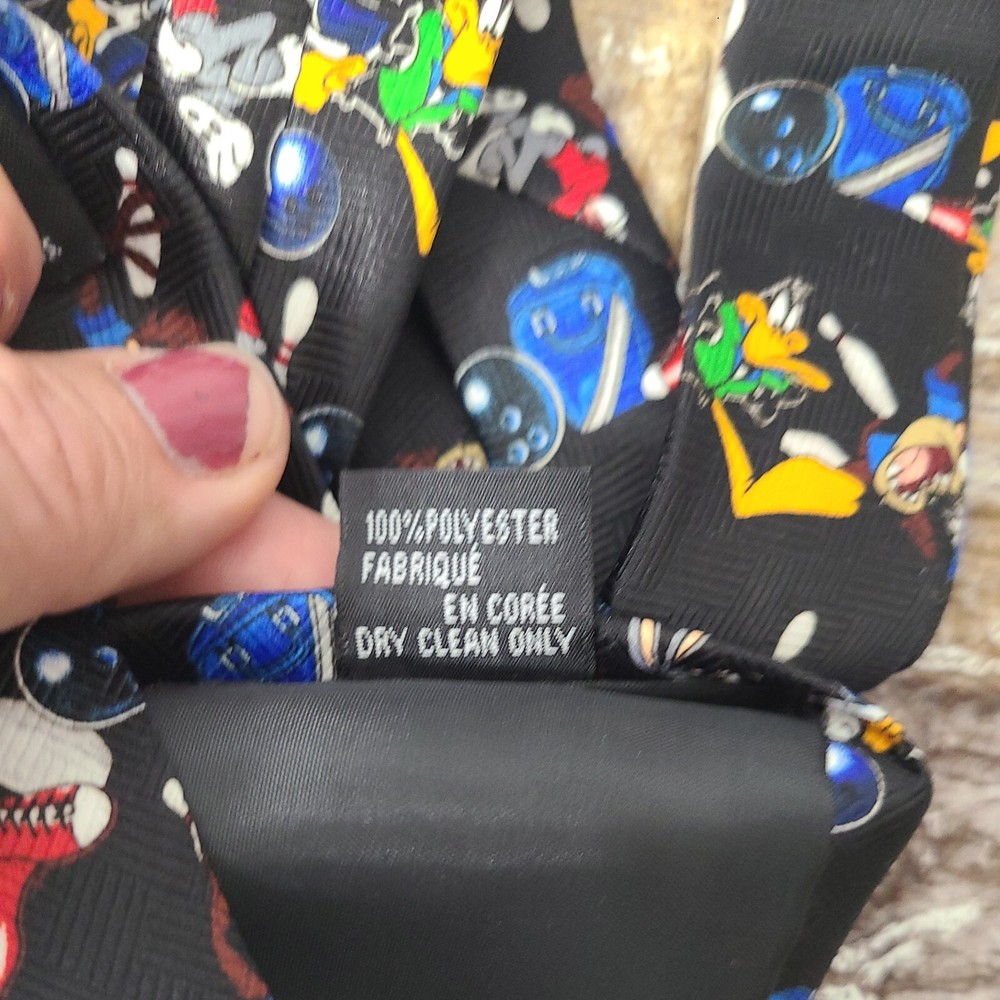 gtin13: Does not apply Style: Pointed UPC: Does not apply Material: Polyester MPN: na Accents: Logo Type: Tie Department: Men Brand: Vintage Character: Bugs Bunny Country/Region of Manufacture: Korea, Republic of Color: Black Theme: Looney Tunes Pattern: looney tunes Fabric Type: polyester