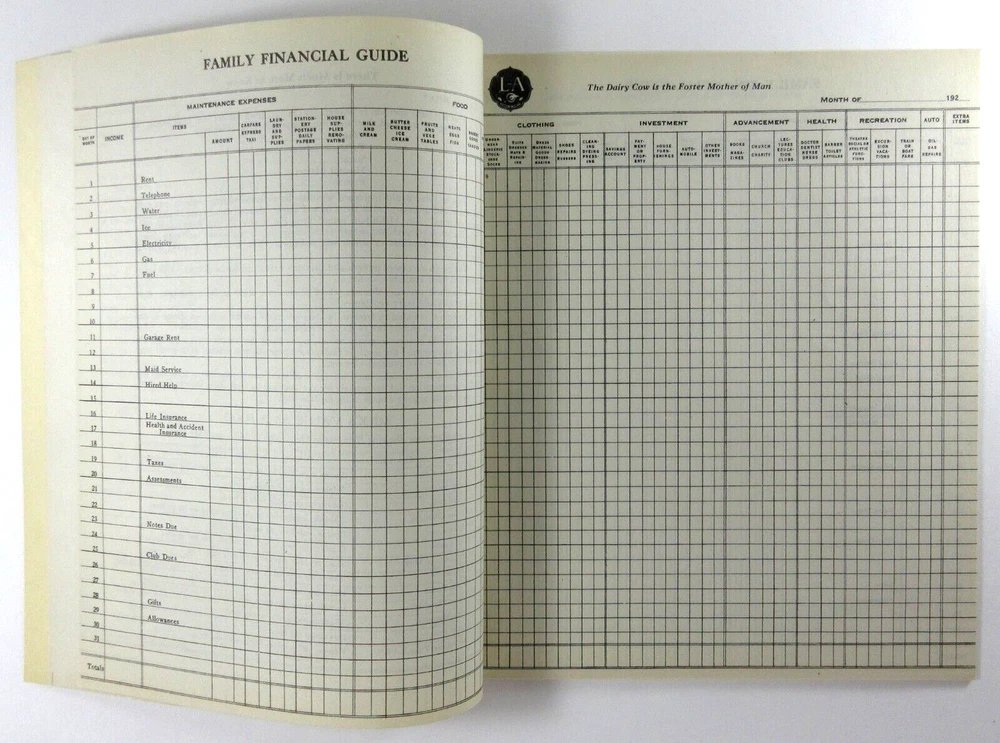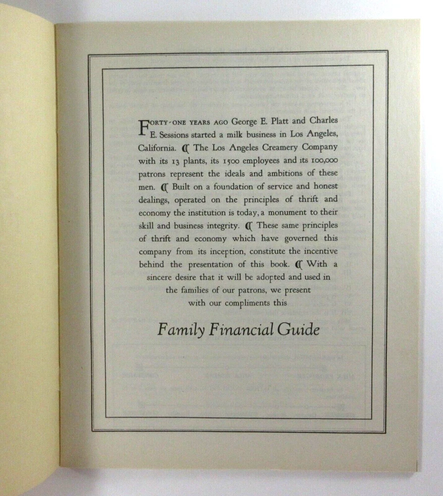 Check out our store under the " Advertising > Agriculture " category for other similar vintage items and save on shipping! Estate sale find, vintage original Los Angeles Creamery Dairy Premium Family Financial Guide Ledger 1920s. The item measures approximately 8.5" X 10.5", approximate shipping weight 7 ounces. PLEASE SEE DESCRIPTION AND PHOTOS FOR ADDITIONAL DETAILS - The item appears to be in overall Fair to Good Minus used condition, signs of wear, creases, fading, tears, chipping, sunning and age toning, soiling, stains, writing, no odors, please see images. (C2E3-309)