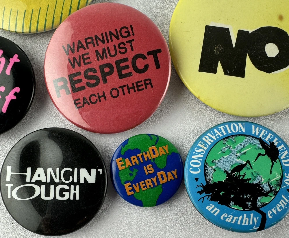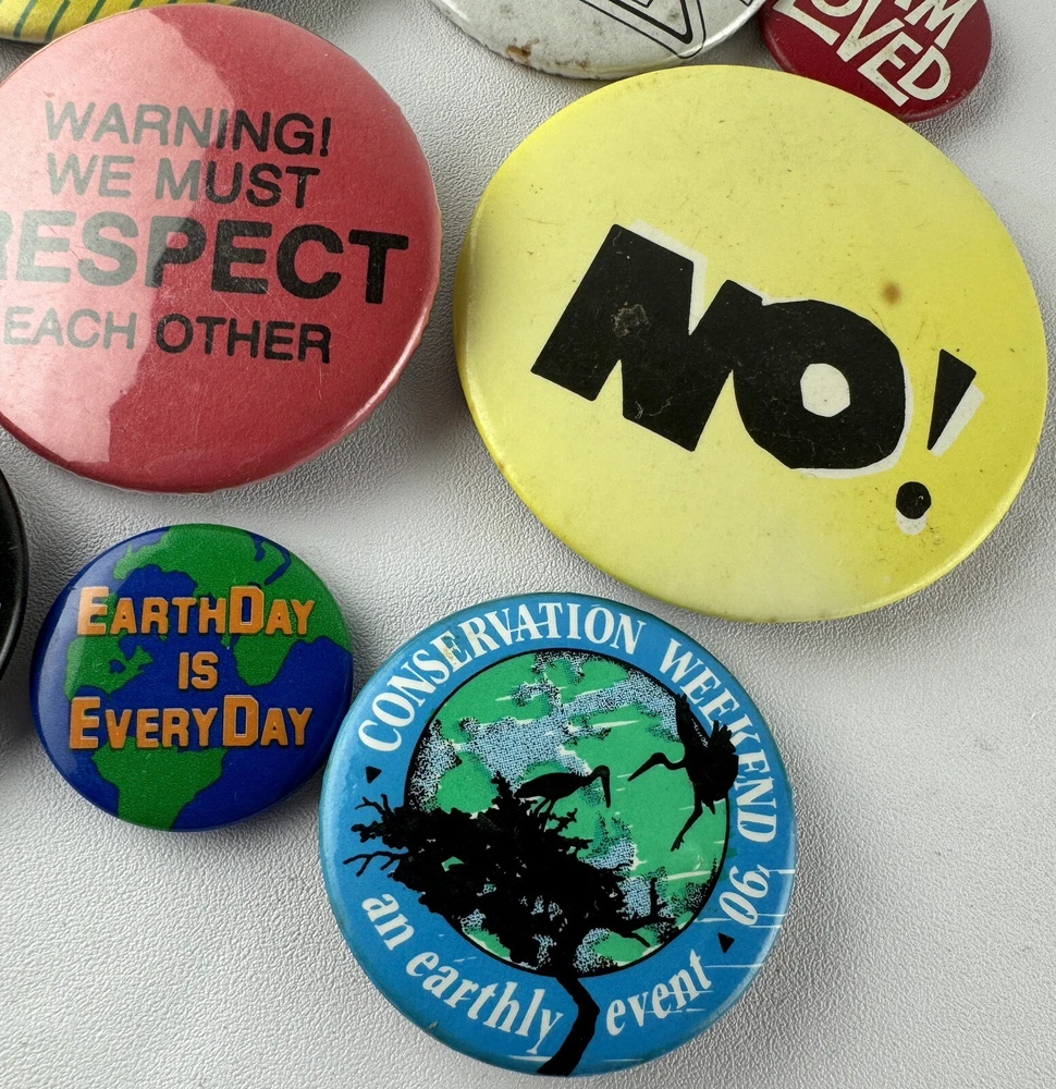 Vintage Lot Of 9 Iconic Fashionable RETRO Pin Pack- Conservation, Earth Day, NO!