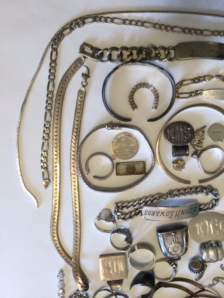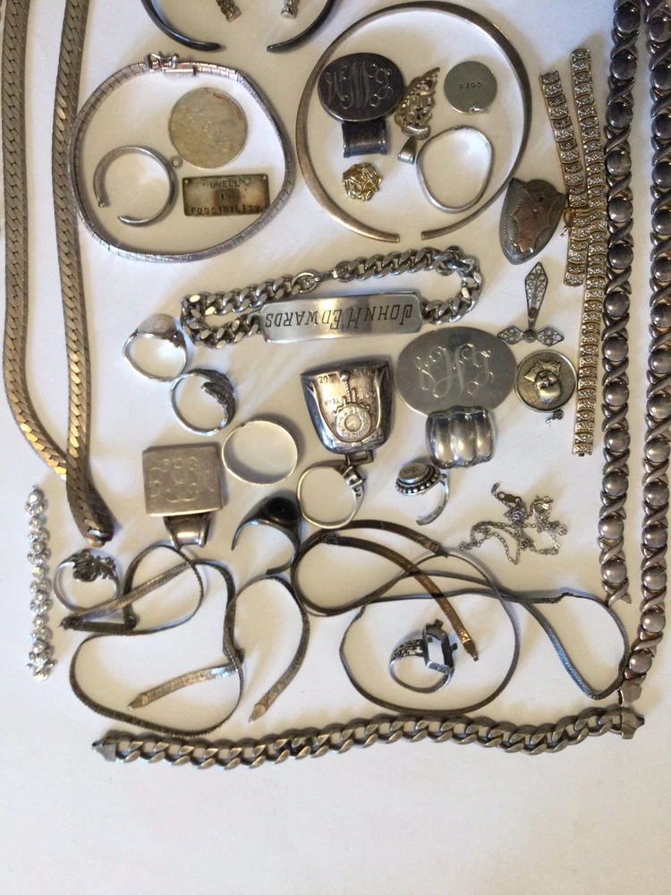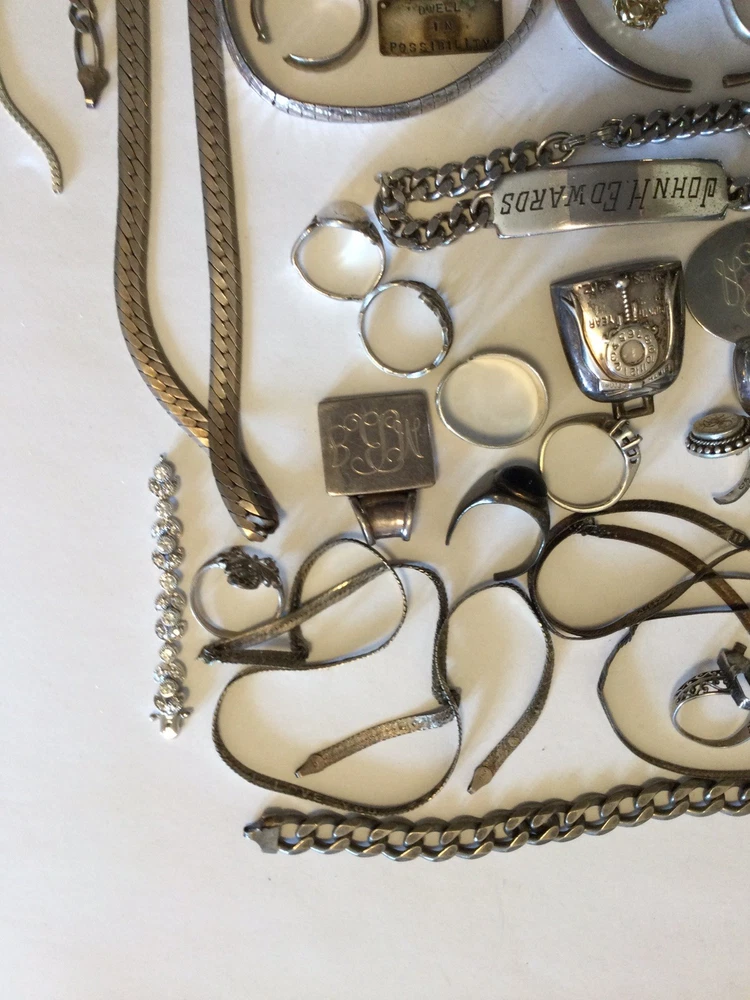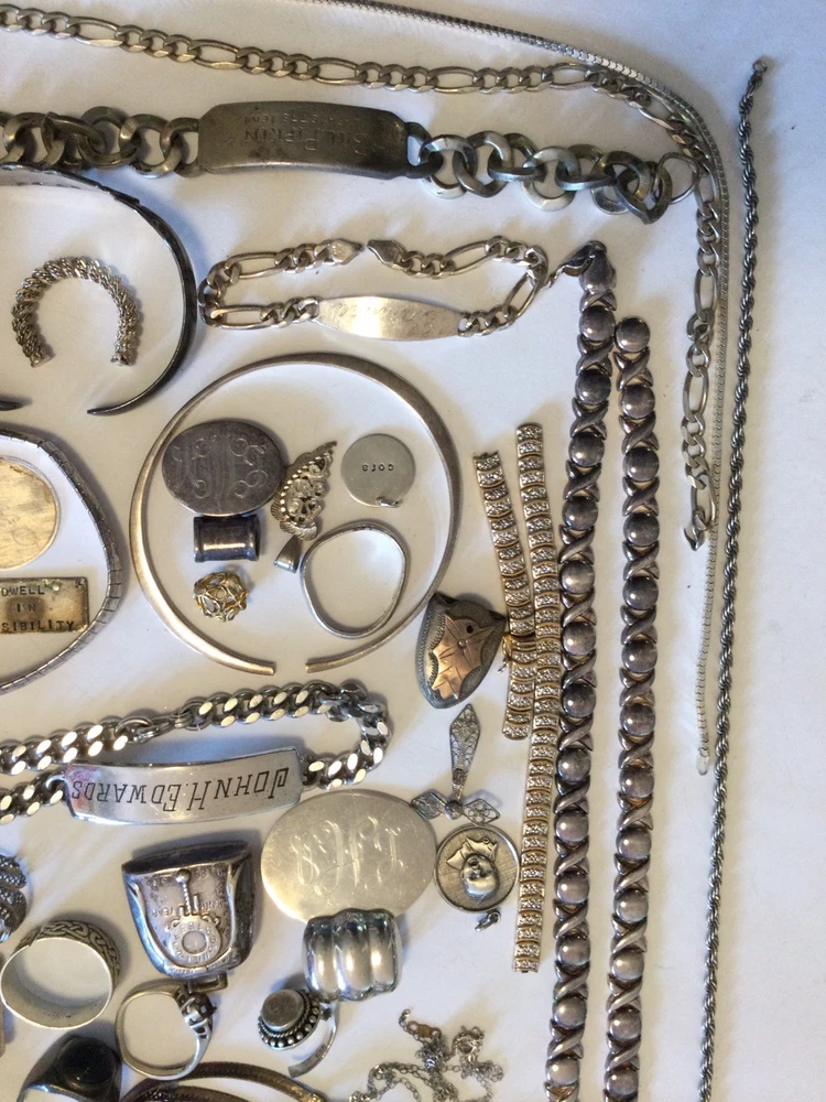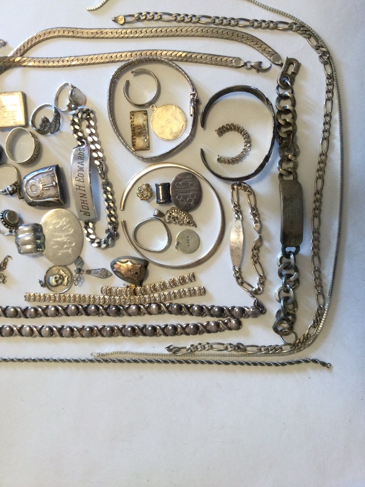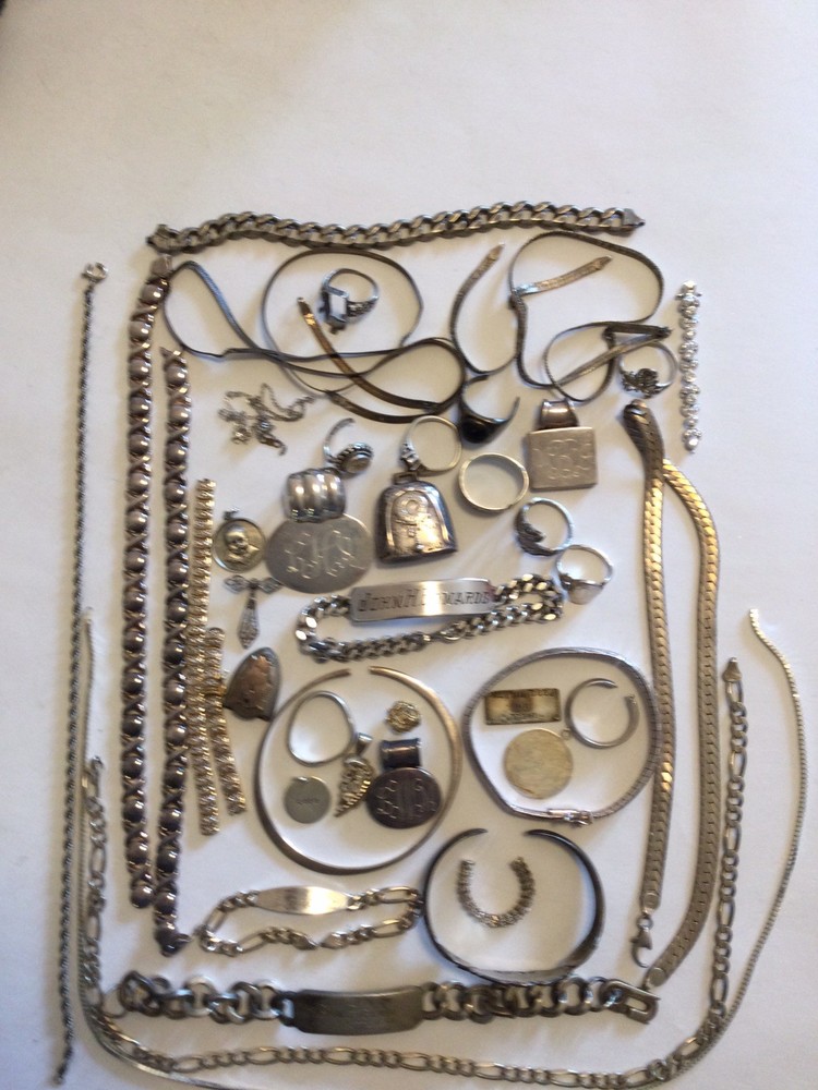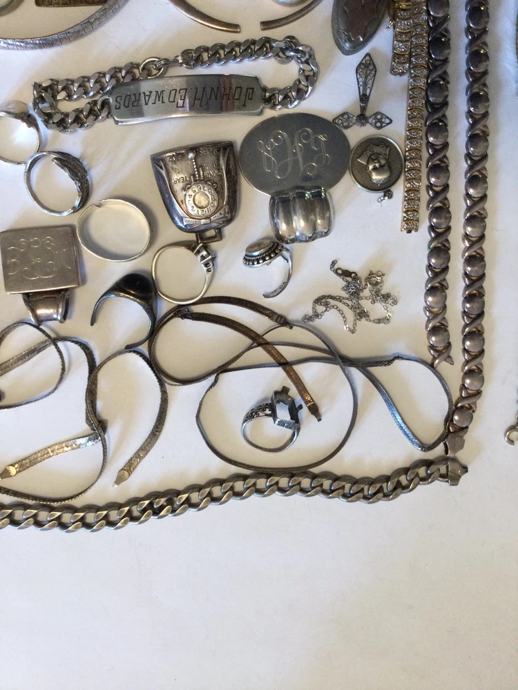 This vintage lot of sterling silver jewelry weighing 386+ grams, can be used for various purposes such as repair, repurposing, or for its scrap value. The mixed lot of sterling silver pieces is being sold as scrap. You will receive what is in the pictures.