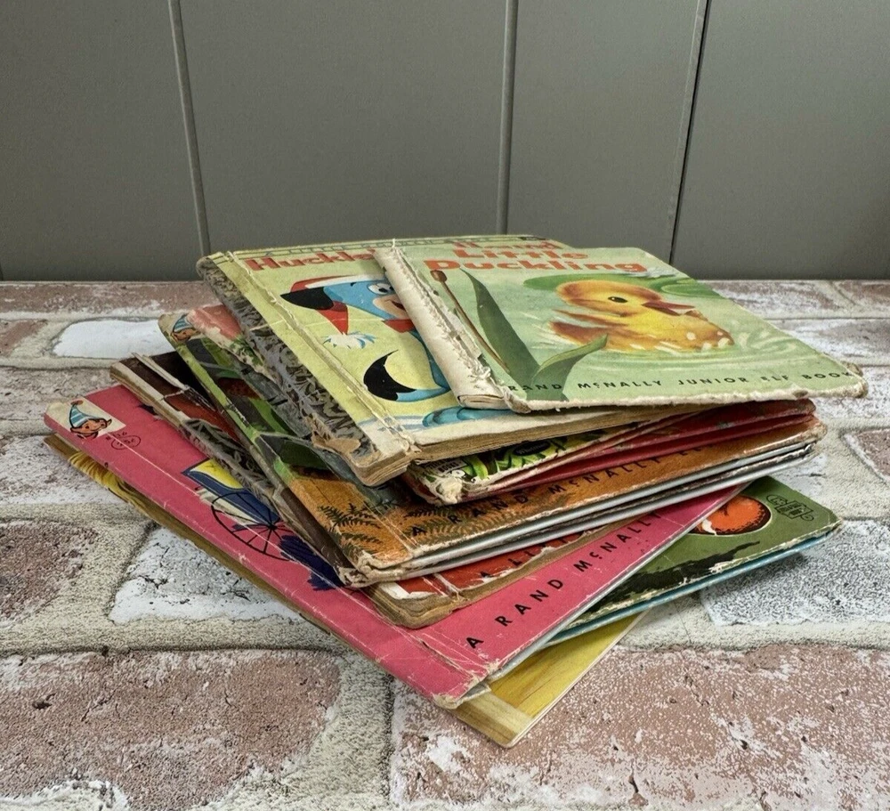 Vintage Lot of 12 Childrens Books 50s-60s? A few missing backs - Nursery Decor 12 vintage childrens books in varying condition. A few of the books are missing backs & a few have writing inside. See photos.