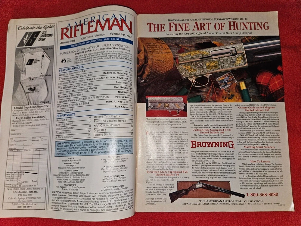 This lot includes 12 monthly issues of "The American Rifleman" magazine from 1993. Each magazine is written in English and covers topics related to the history of rifles in the United States. The publications are complete with all issues from 1993, and in great condition, making them a great addition to any collector's archive. The magazines were published by the National Rifle Association (NRA) and are an excellent resource for anyone interested in the history of rifles or the NRA.