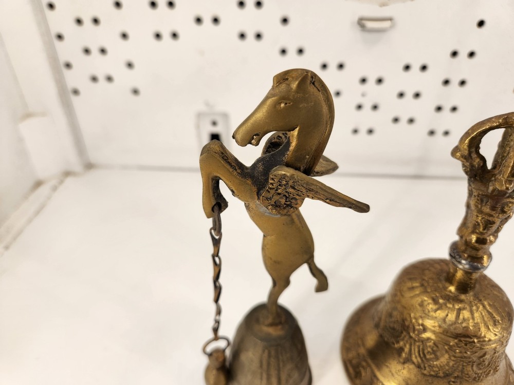 See photos for the best representation of condition, the Pegasus bell is really unique with the striker on the outside of the bell.