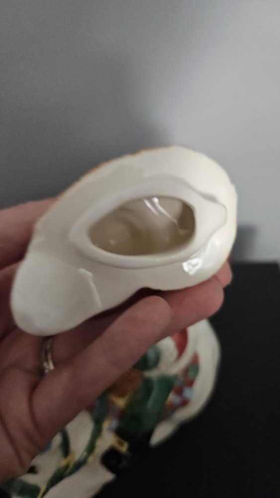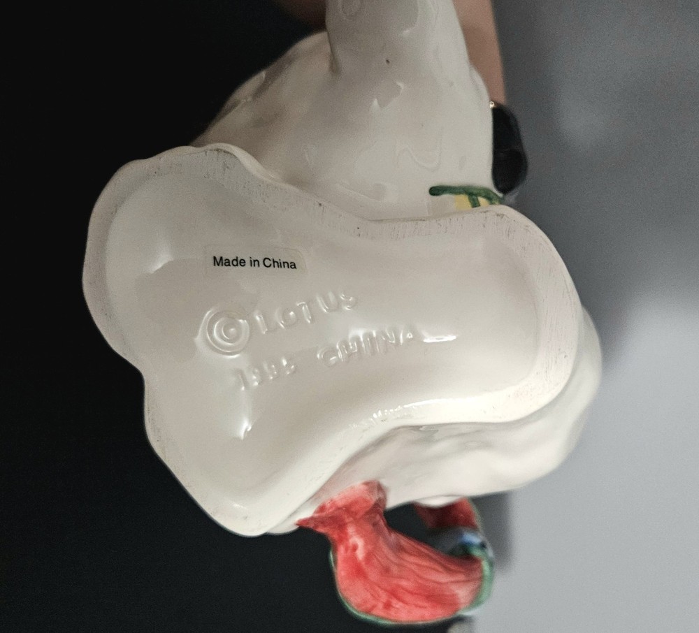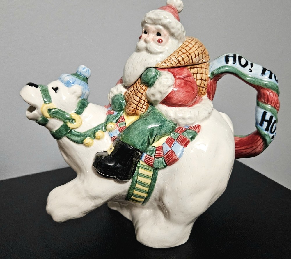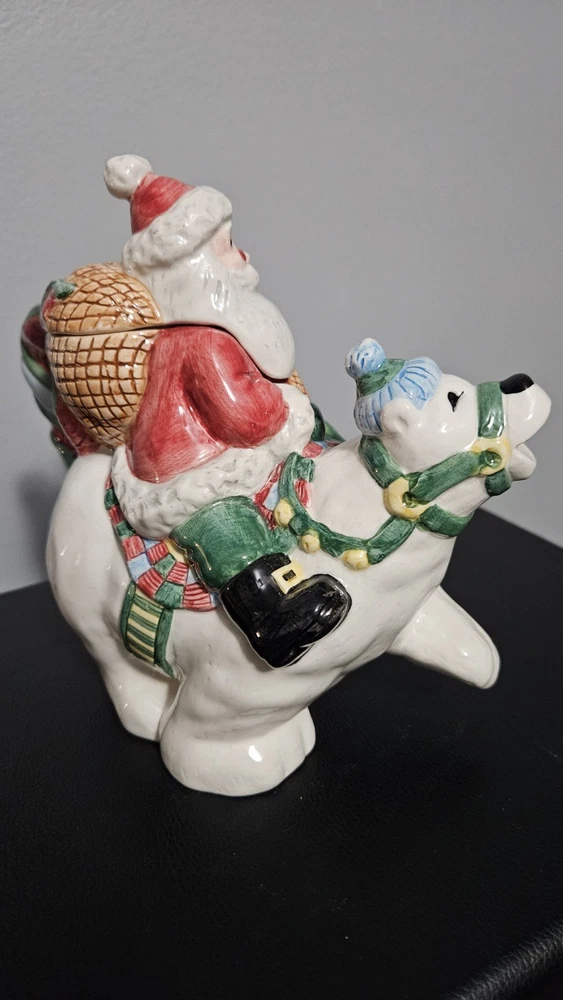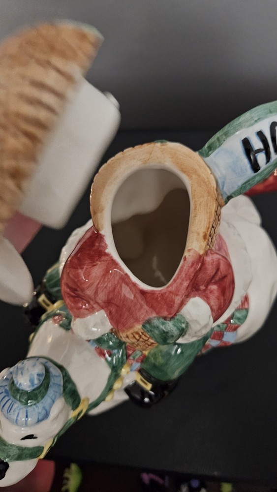 The Vintage Lotus 1995 Santa On Bear Teapot is a ceramic decoration manufactured in China during the 1990s. This unique piece features a multicolor design with Santa Claus sitting on top of a bear, making it a charming addition to Christmas decorations. The Lotus brand adds a touch of nostalgia to any holiday collection, especially for those who appreciate vintage Christmas decor from the 1990s.