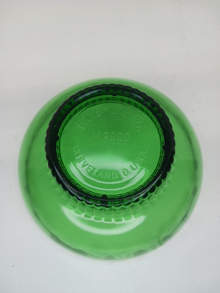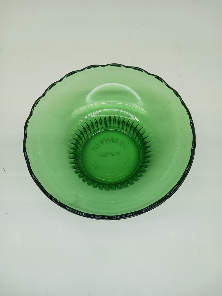 Vintage EO Brody Co M2000 Green Depression Glass Scalloped Ribbed Pedestal Bowl