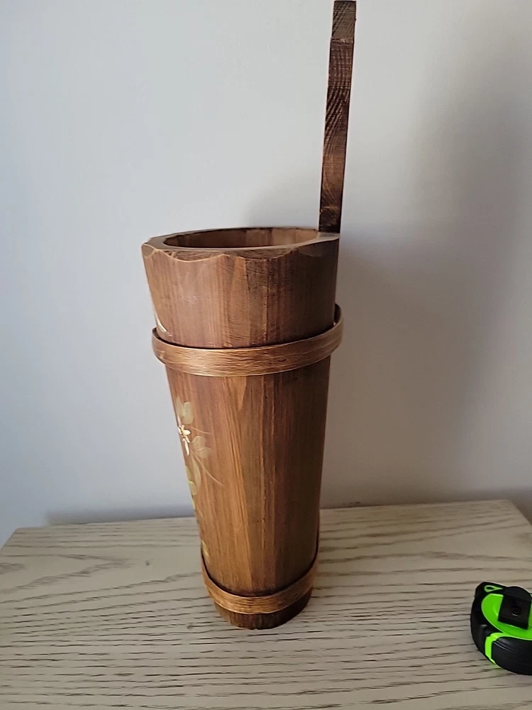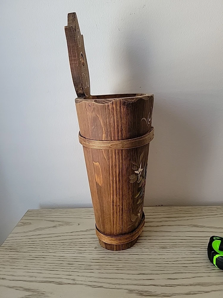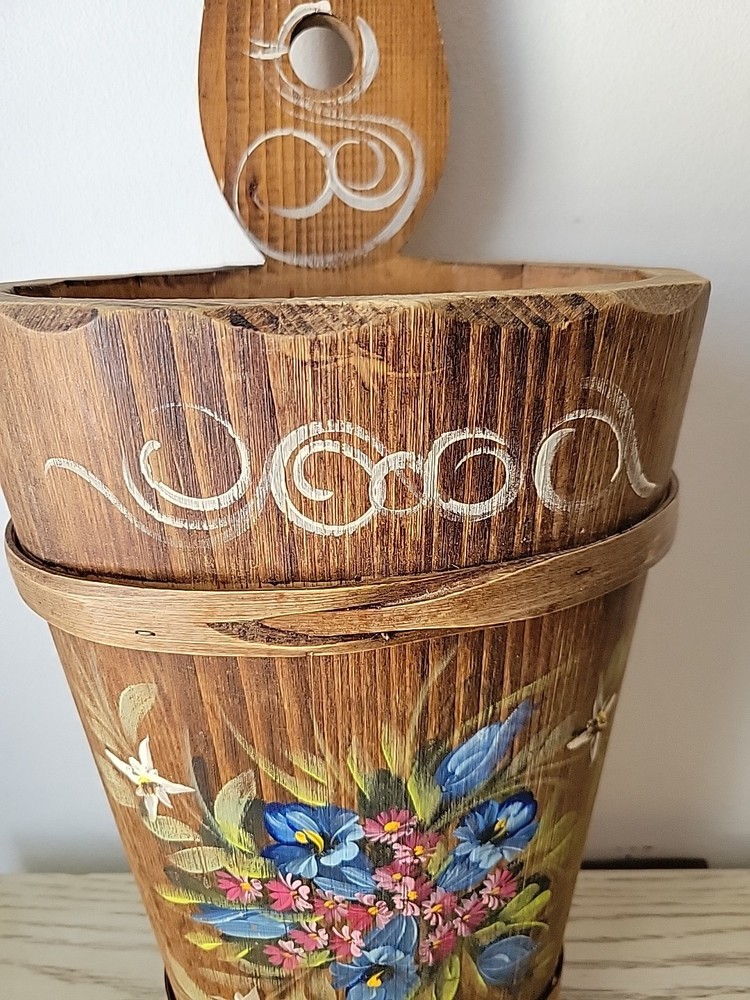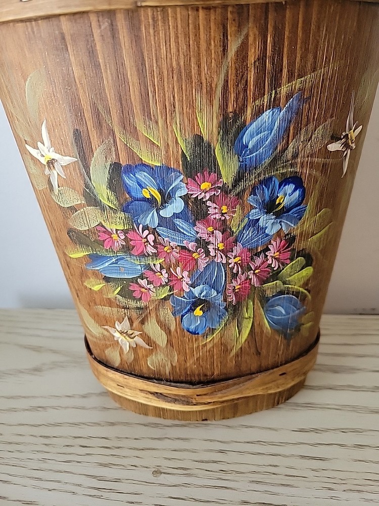 Vintage MCM Carved Wood Bamboo Bavarian Hand-Painted Umbrella Stand