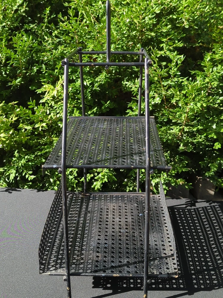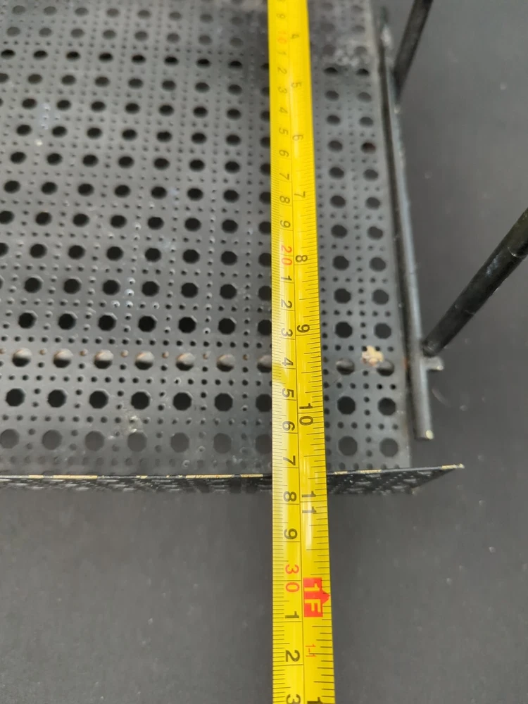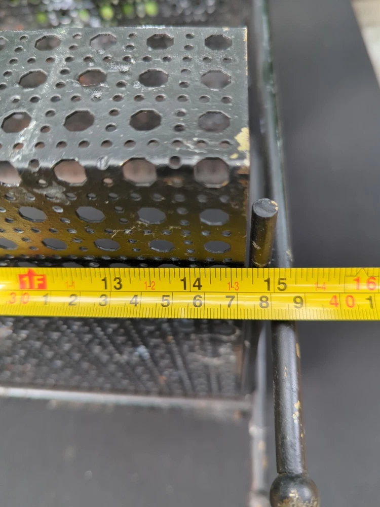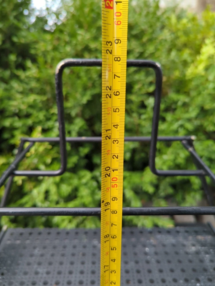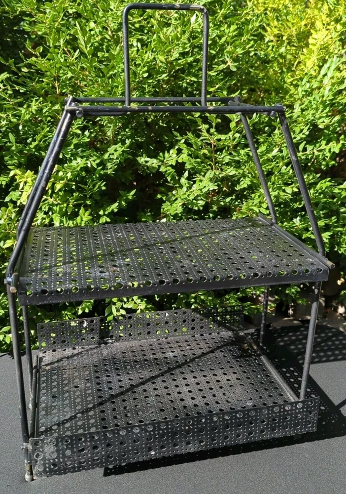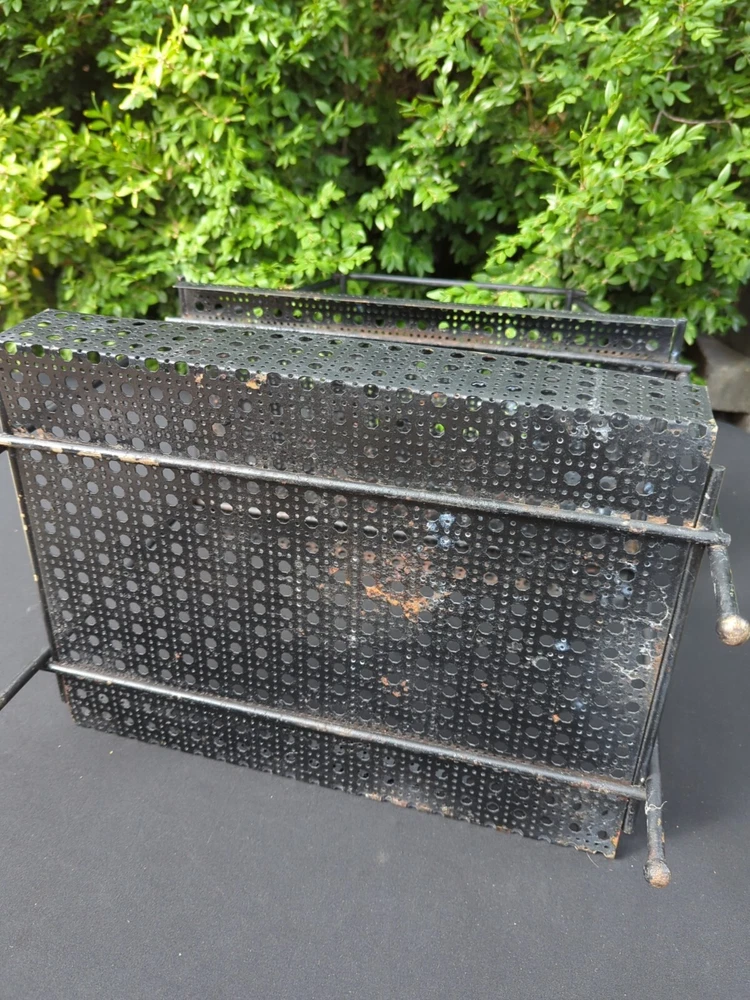 There is some wear on the metal. It can be used as it is or it can be spray painted for it to look like new. This vintage MCM Mid Century Modern black wire footed shelf magazine rack is a stylish addition to any home decor. The rack is made of high-quality wire material that is durable and long-lasting. The black color of the rack adds a touch of elegance and sophistication to any living space. The rack is perfect for holding your favorite magazines, books, or other items. Its unique design and style make it a great conversation starter. Whether you're a collector of antique furniture or just looking for a functional piece that adds a touch of style to your home, this vintage MCM Mid Century Modern black wire footed magazine rack is a great choice. 22.5x15x11