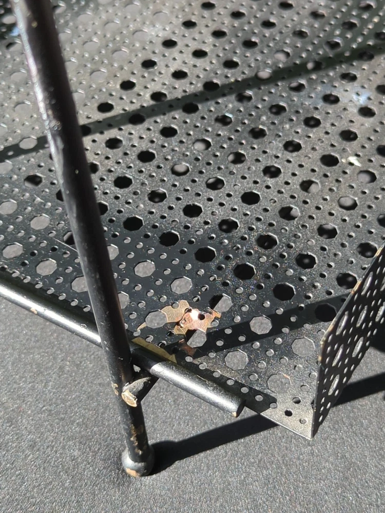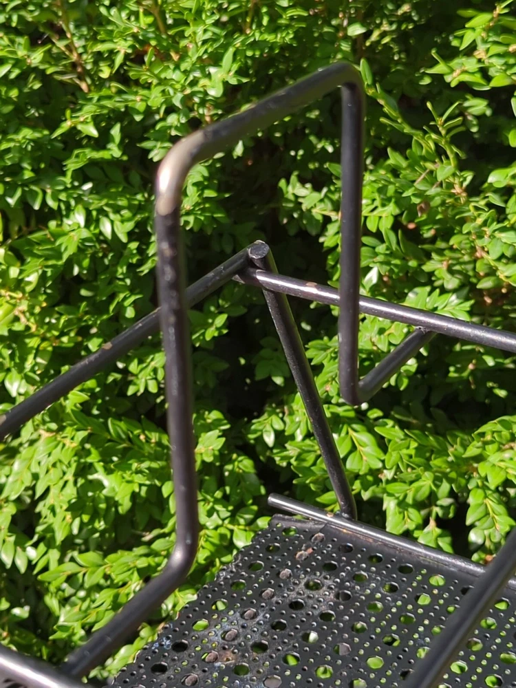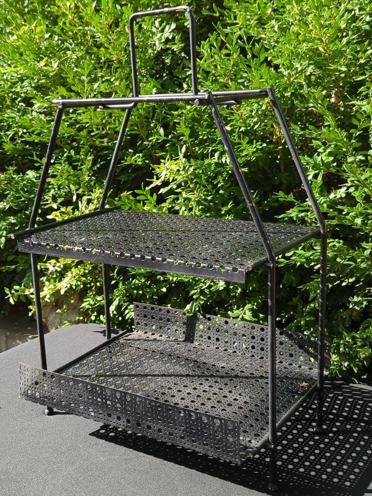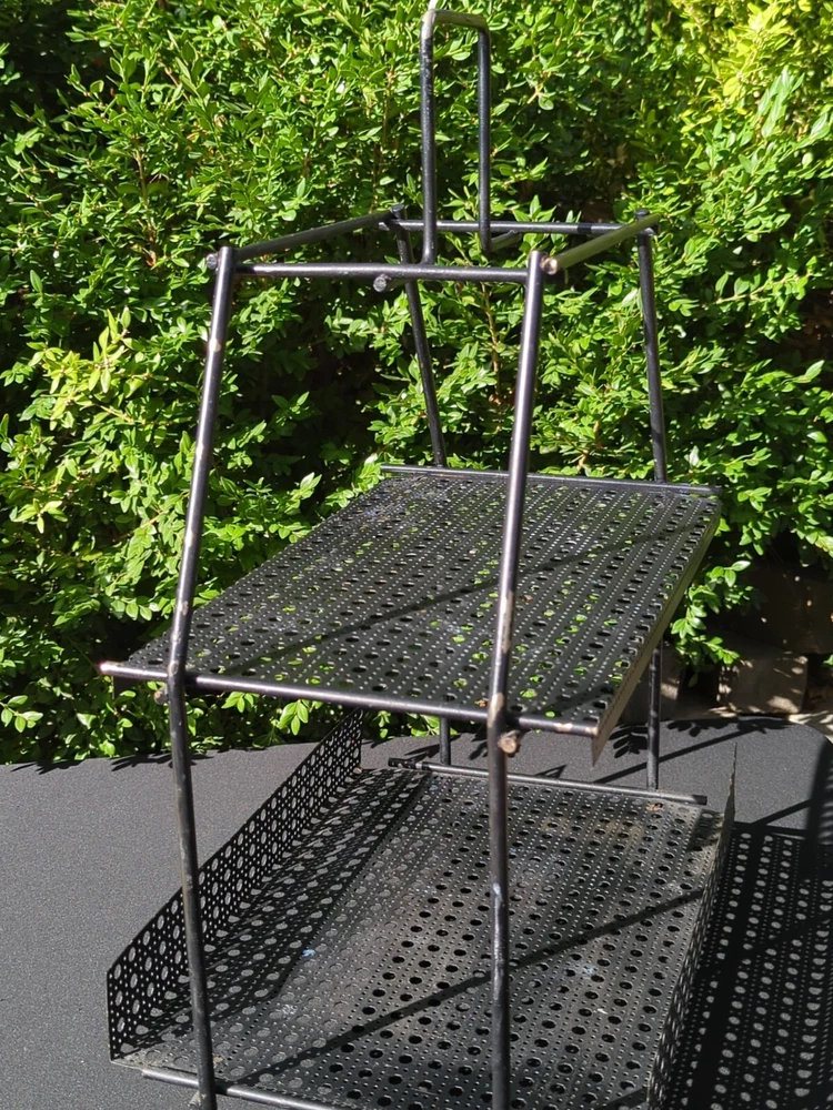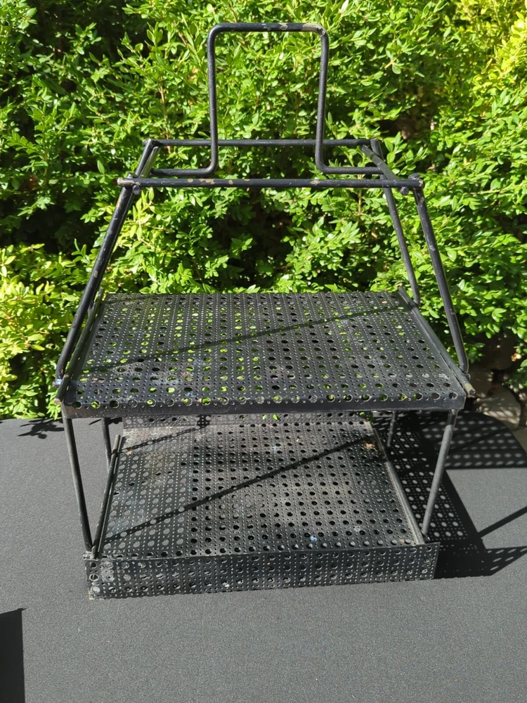 There is some wear on the metal. It can be used as it is or it can be spray painted for it to look like new. This vintage MCM Mid Century Modern black wire footed shelf magazine rack is a stylish addition to any home decor. The rack is made of high-quality wire material that is durable and long-lasting. The black color of the rack adds a touch of elegance and sophistication to any living space. The rack is perfect for holding your favorite magazines, books, or other items. Its unique design and style make it a great conversation starter. Whether you're a collector of antique furniture or just looking for a functional piece that adds a touch of style to your home, this vintage MCM Mid Century Modern black wire footed magazine rack is a great choice. 22.5x15x11