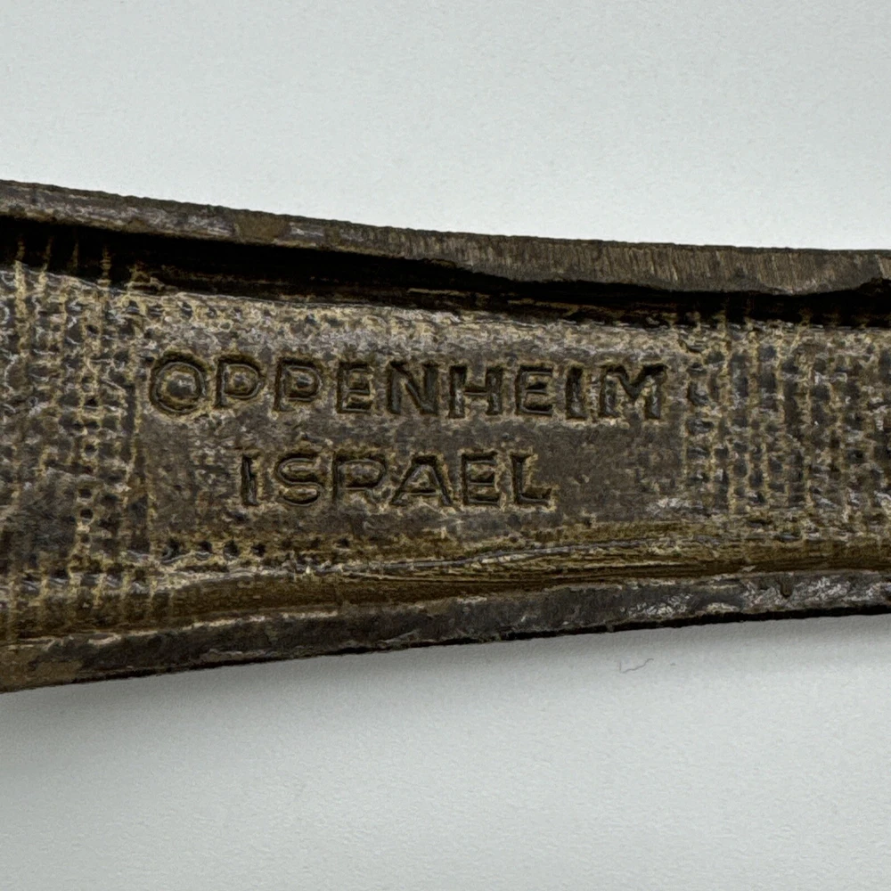 Vintage MCM ornate Brass Oppenheim Israel Footed Nut Cracker Tabletop Jerusalem Pre owned Vintage Good condition with normal signs of wear as expected with age and use Sturdy, solid piece