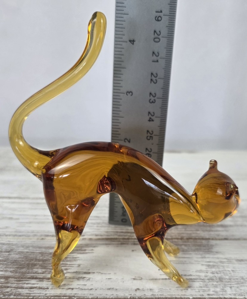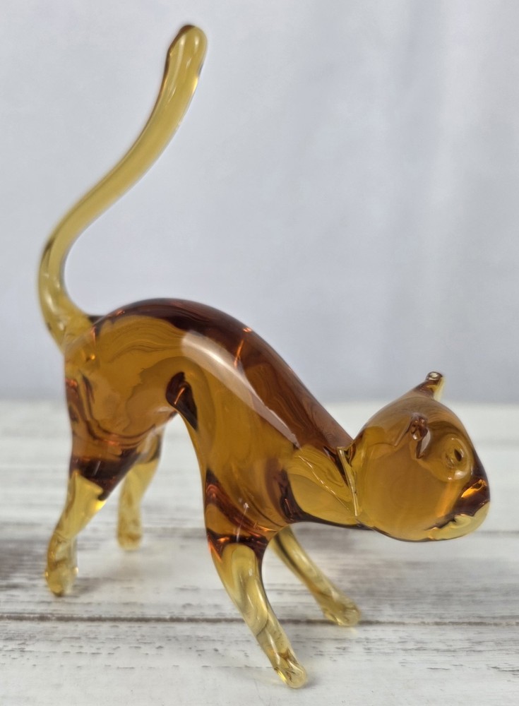 Vintage MCM Viking Glass Amber Kitten Cat Figurine Art Glass. Condition is Used. Shipped with USPS Ground Advantage.