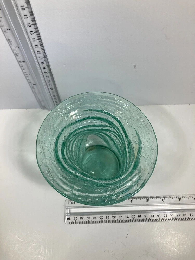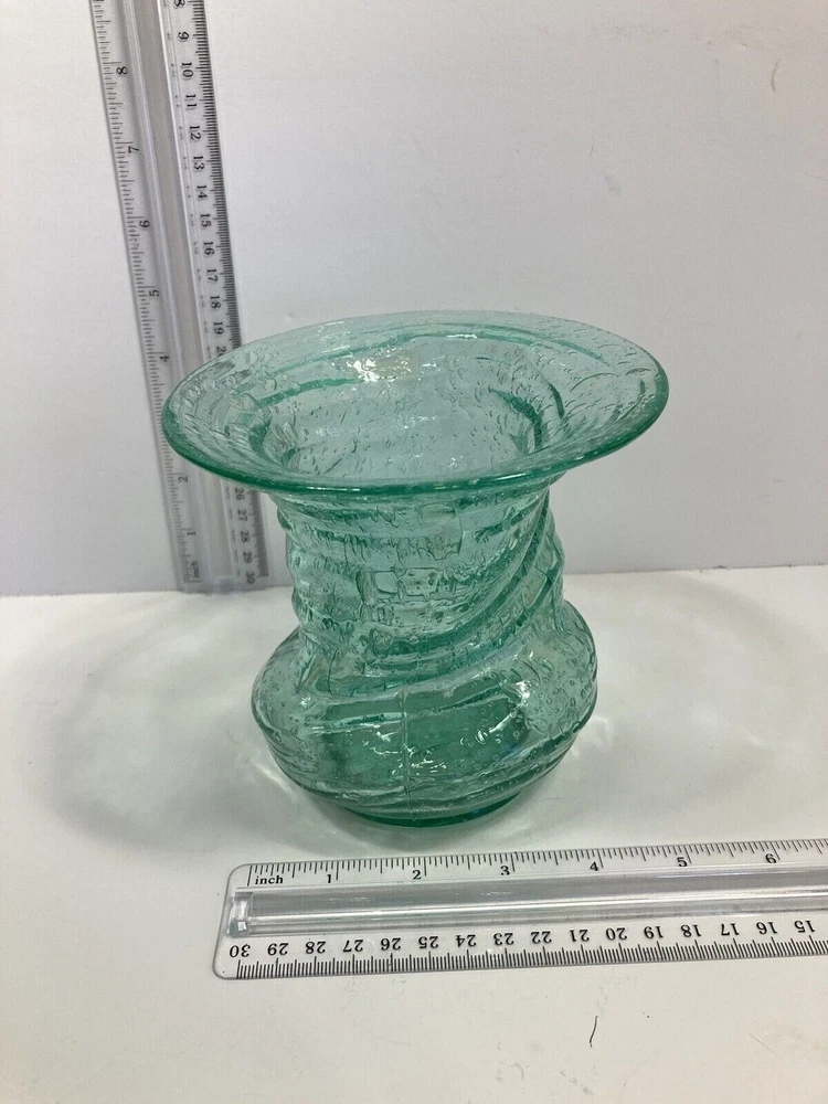 Really unusual piece. Naturally imperfect shape. 5" Wide 5" Tall. They owner had a note stuck to the bottom saying New Jersey Glass. No cracks or chips. Condition Very Good. I'm guessing at the dating of the 60's.