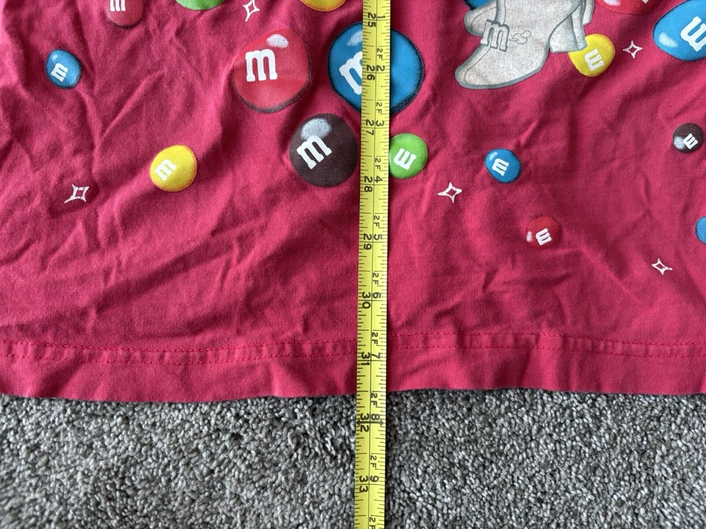 This vintage M&M's night sleep shirt for women features a red color with a graphic print of classic M&M's chocolate candy. Made from 100% cotton knit fabric, this lightweight sleepshirt has a round neck, short sleeves, and a pullover closure. With a one-size fit suitable for sizes small to large, this nostalgic piece is perfect for fans of M&M's looking for a comfortable and stylish sleepwear option with a touch of 90s nostalgia. Perfect for summer, fall, and spring seasons, this machine-washable sleepshirt is a fun addition to any sleepwear collection.