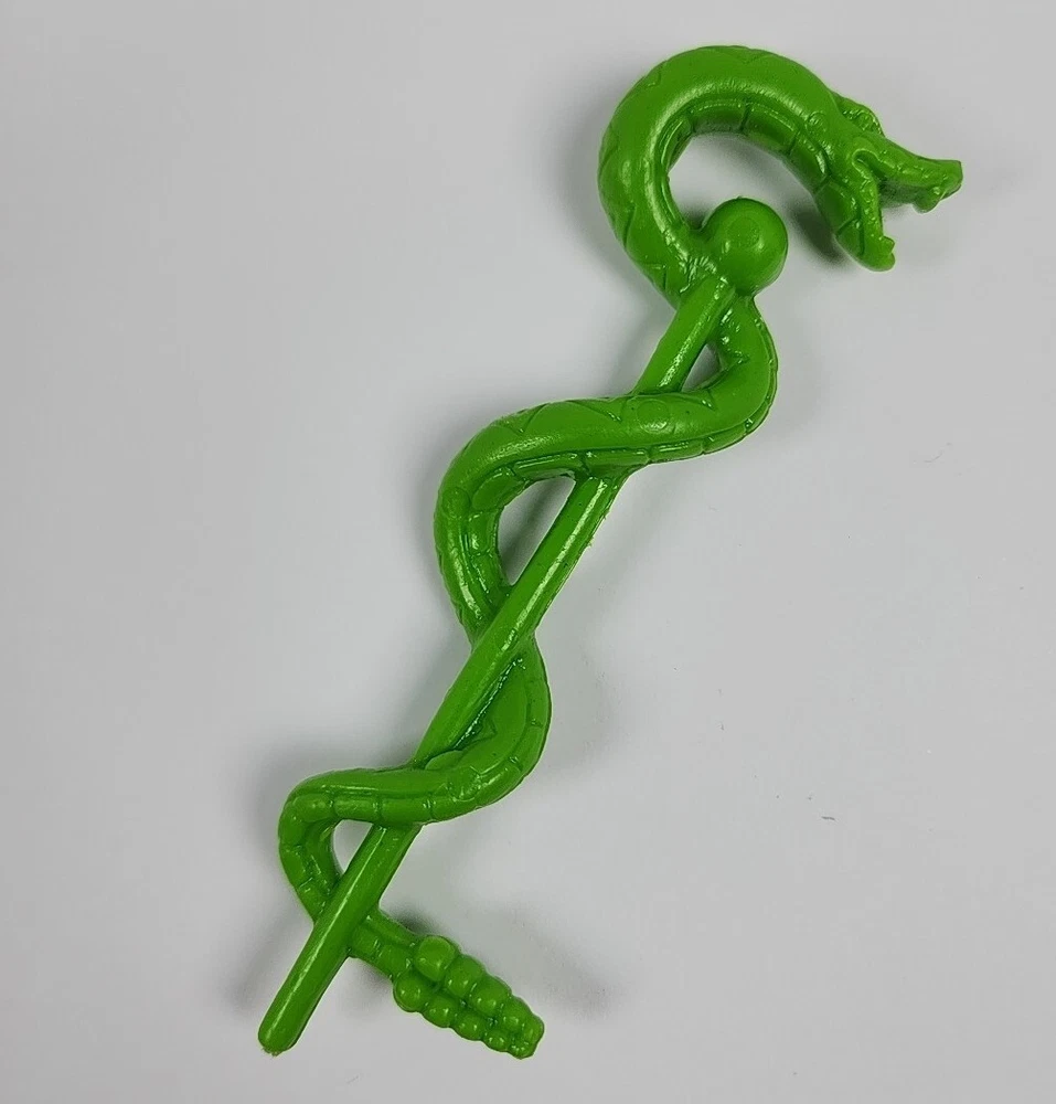 Vintage MOTU King Hiss Snake Staff Weapon Replacement Piece Part Includes 1 replacement piece, as pictured (Green Staff). Piece is original, and is in GOOD condition overall. It shows normal signs of wear and use, including scuffs/scrapes, some paint wear, etc... Please see photos for more detail of condition. Fast shipping, generally ships next business day.