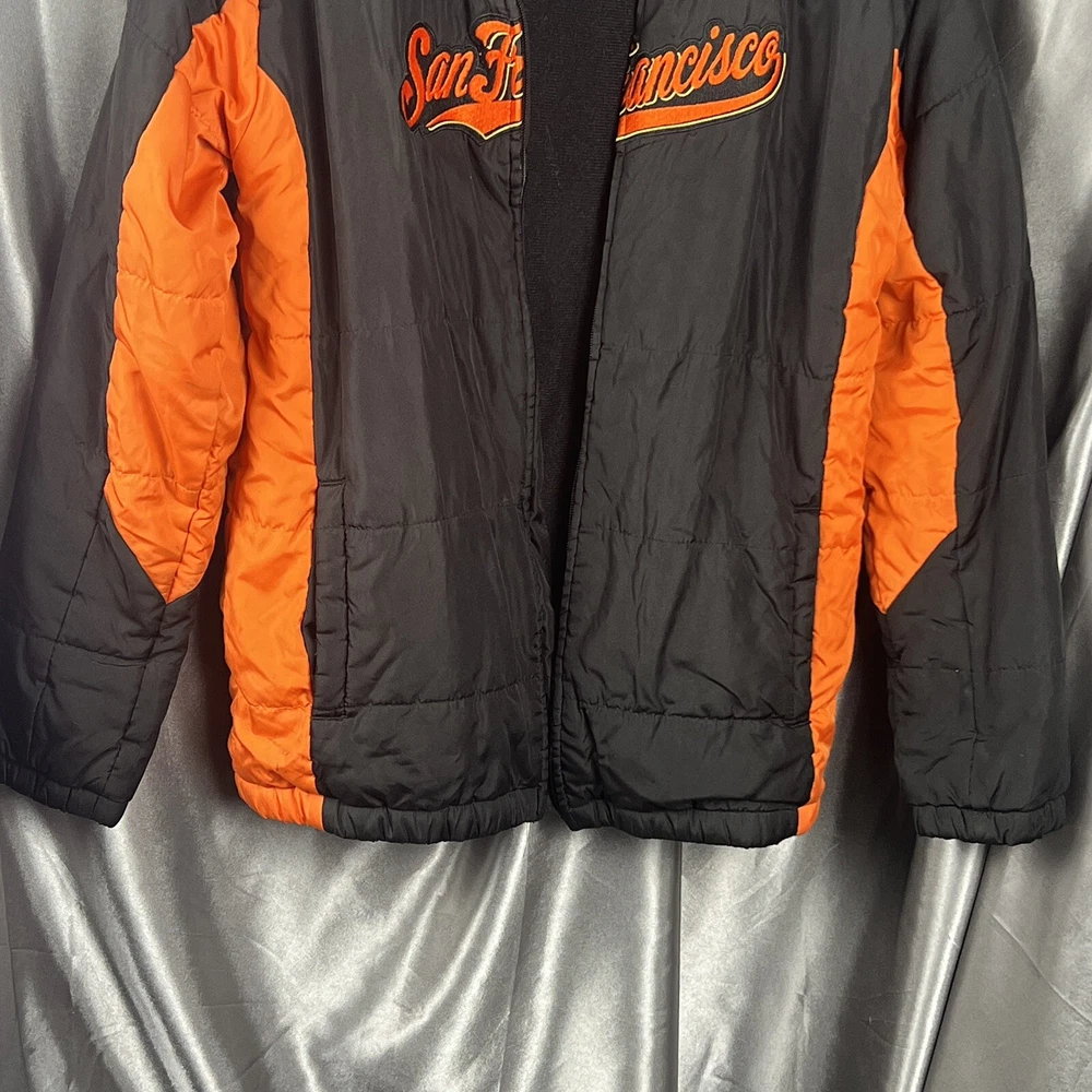VTG Majestic San Francisco Giants Jacket Youth Large 14/16 MLB Black Script *zipper is broken and needs to be replaced Condition shown in photos Please make sure to view and zoom in on all photos to determine the condition of the jacket. 🧼 Jacket has been cleaned and sanitized to meet the platform standards Questions? Want more pics? Send a DM 🙂 📬 Ships same day or within 24/hrs! 🥳 Full refunds will be given for returned items sent in original condition.