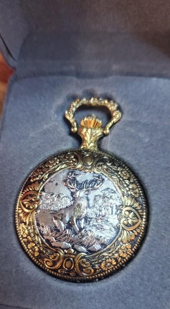 HomeVintage Majestron Buck Deer Pocket Watch Silver & Gold In Case or Box