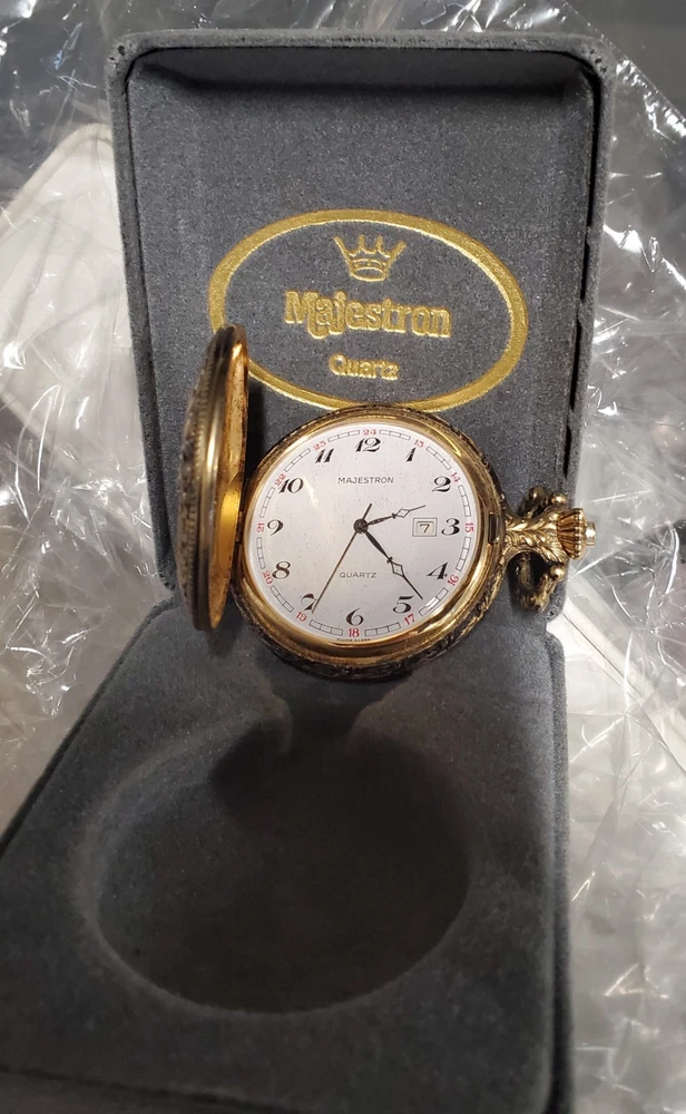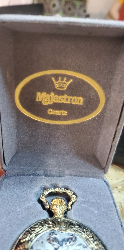 With Service Records:NoVintage:YesCase Material:Gold PlatedCaseback:SnapBrand:MajestronDial Color:GoldCustomized:NoDisplay:AnalogCase Color:Gold & Silvergtin13:Does not applyTheme:HuntingMovement:QuartzUPC:Does not applyCase Finish:PolishedType:Pocket WatchYear Manufactured:2000-2009Department:MenWith Manual/Booklet:NoWater Resistance:Not Water ResistantStyle:CasualPersonalize:NoFeatures:Day of Week & DateSeller Warranty:NoClosure:Full Hunter