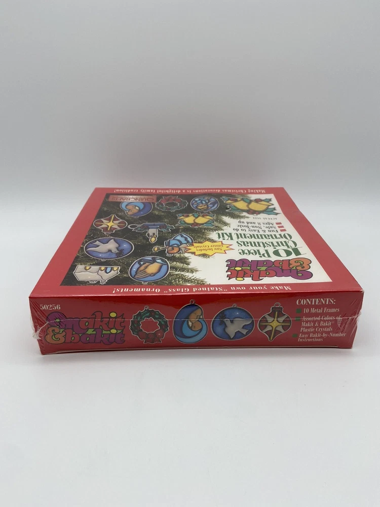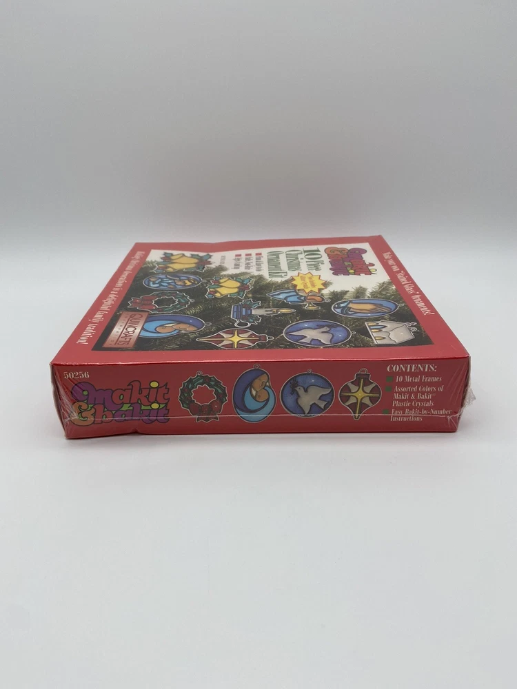 Craft your own stunning stained glass Christmas tree ornaments with the Vintage Makit & Bakit 10 Piece Kit. This set allows you to create beautiful, intricate designs that capture the holiday spirit and add a personal touch to your festive decor. Proudly made in the United States, this kit is a great way to engage in a timeless hobby or to gift to someone who loves unique and handcrafted items. Whether you're an experienced crafter or looking for a new holiday tradition, this Makit & Bakit kit is sure to delight. This is still factory sealed. Look at all of the pictures to see condition. Stand is NOT included